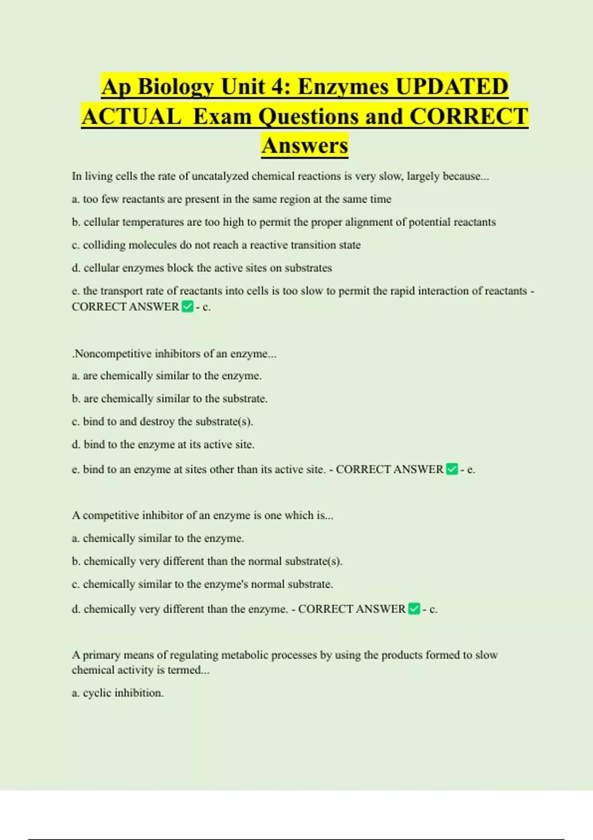 d. chemically very different than the enzyme. - CORRECT ANSWER - c.
