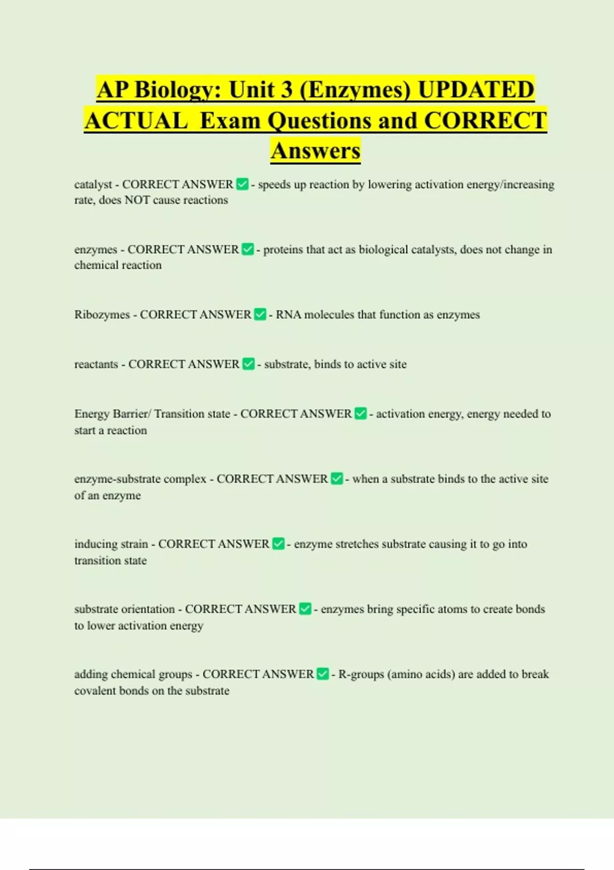 enzymes - CORRECT ANSWER - proteins that act as biological catalysts, does not change in