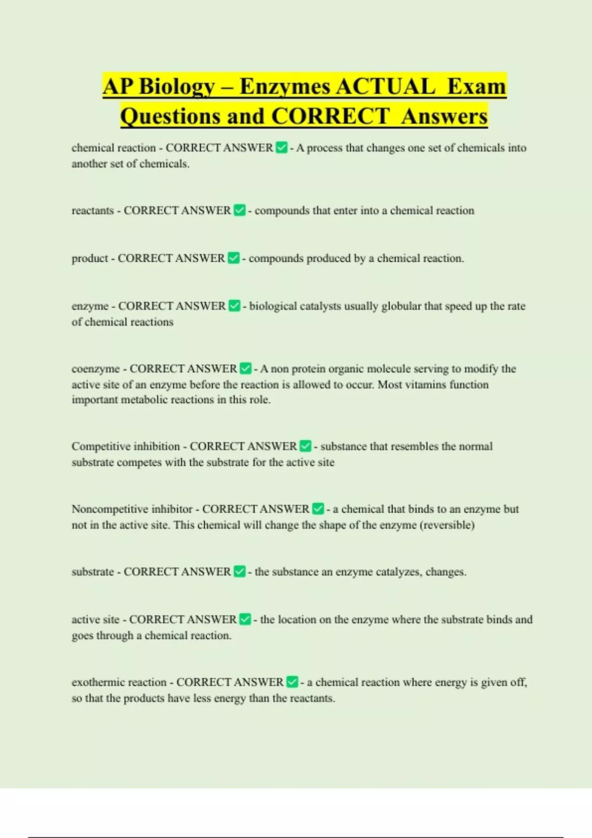 Questions and CORRECT Answers