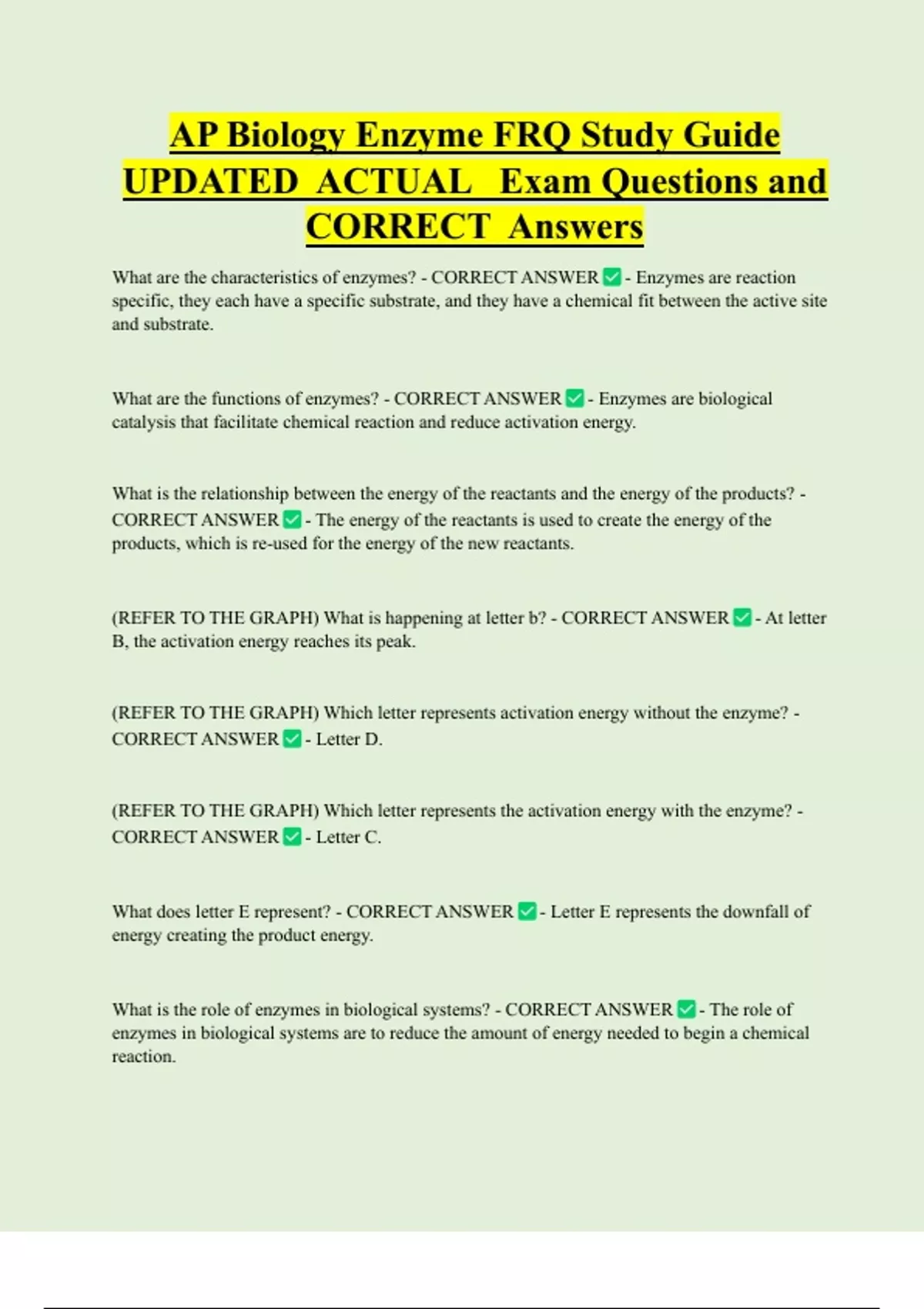 (REFER TO THE GRAPH) Which letter represents activation energy without the enzyme? -