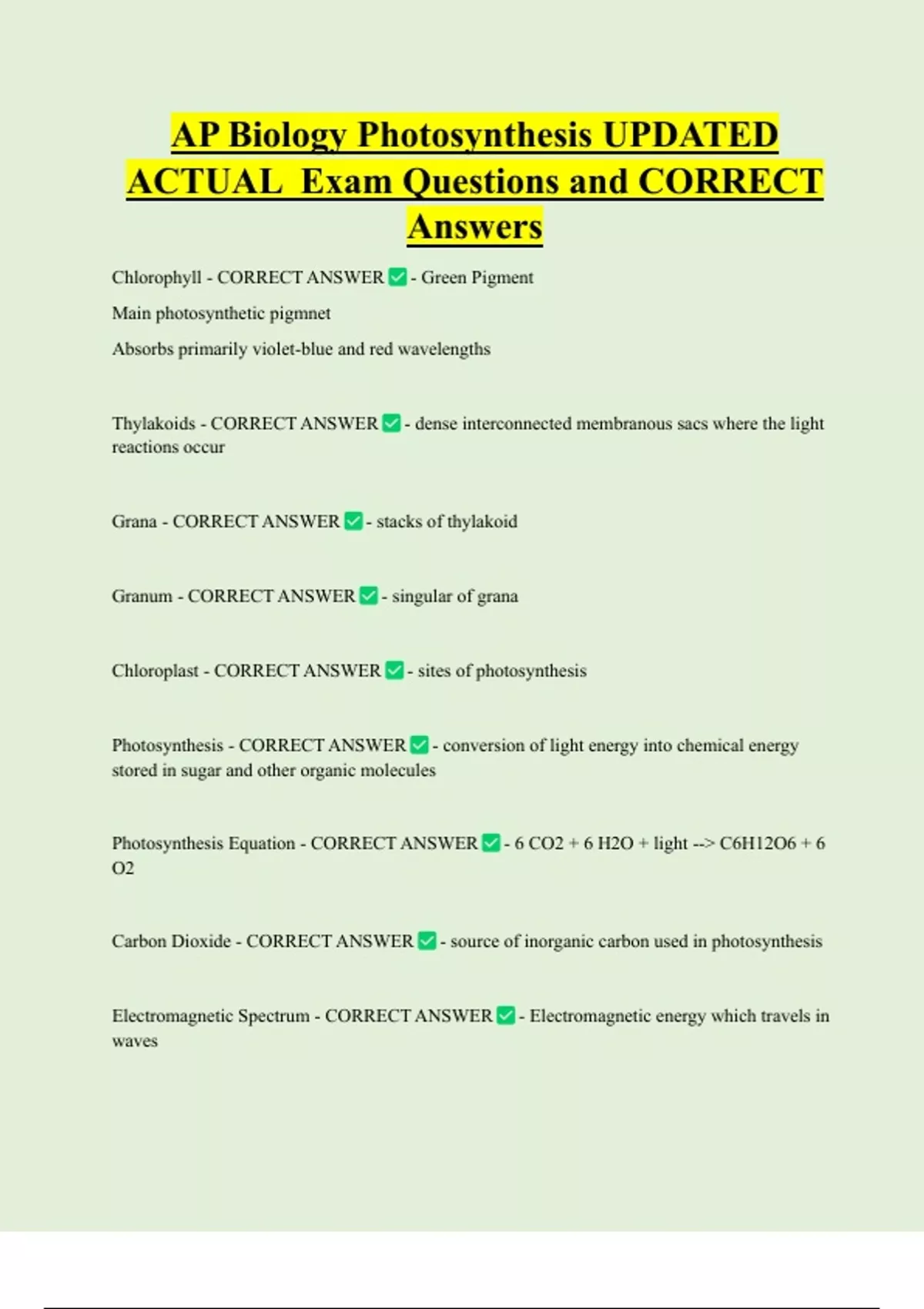Chlorophyll a - CORRECT ANSWER - main photosynthetic green pigment, absorbs primarily