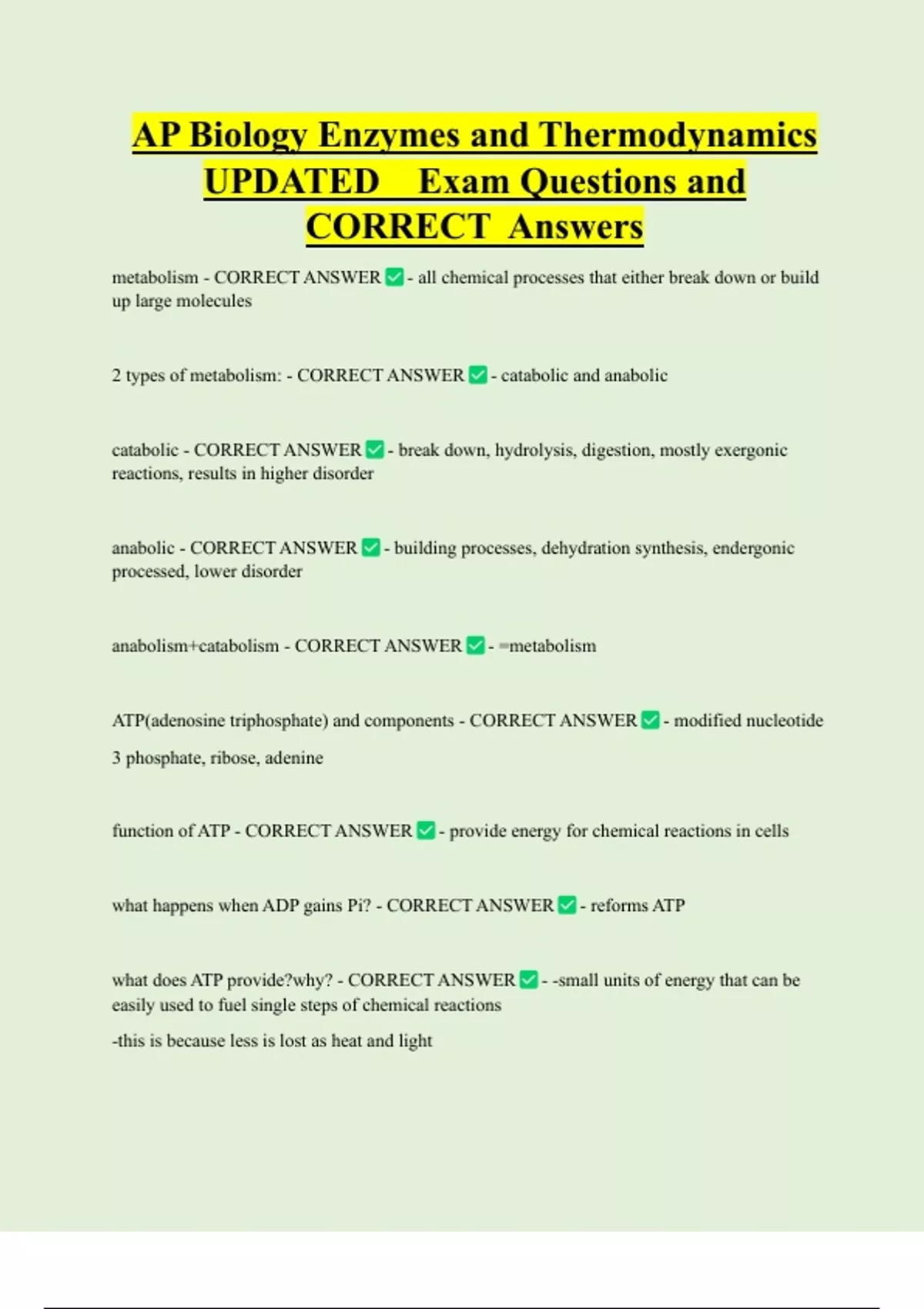 what happens when ADP gains Pi? - CORRECT ANSWER - reforms ATP
