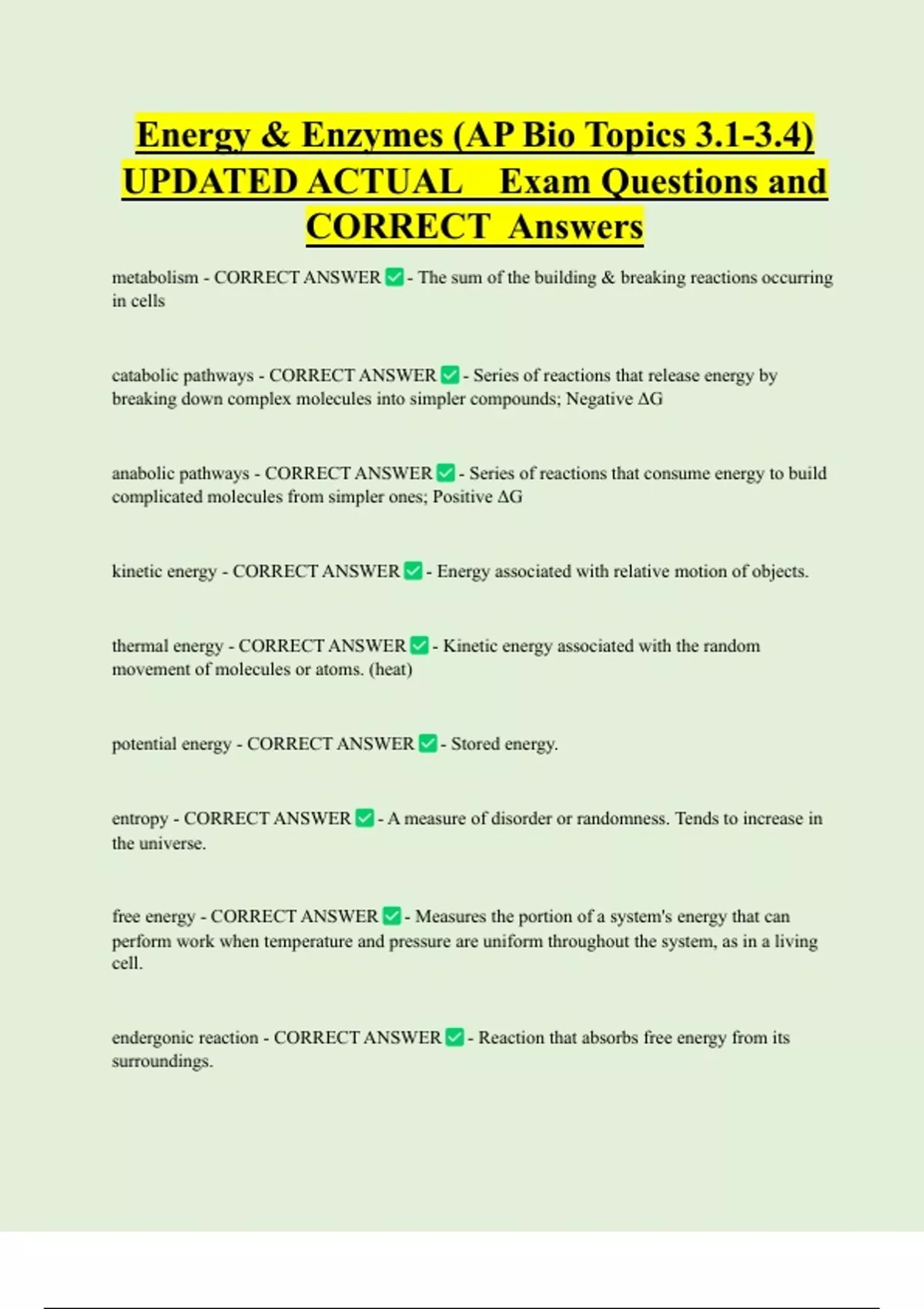 catabolic pathways - CORRECT ANSWER - Series of reactions that release energy by