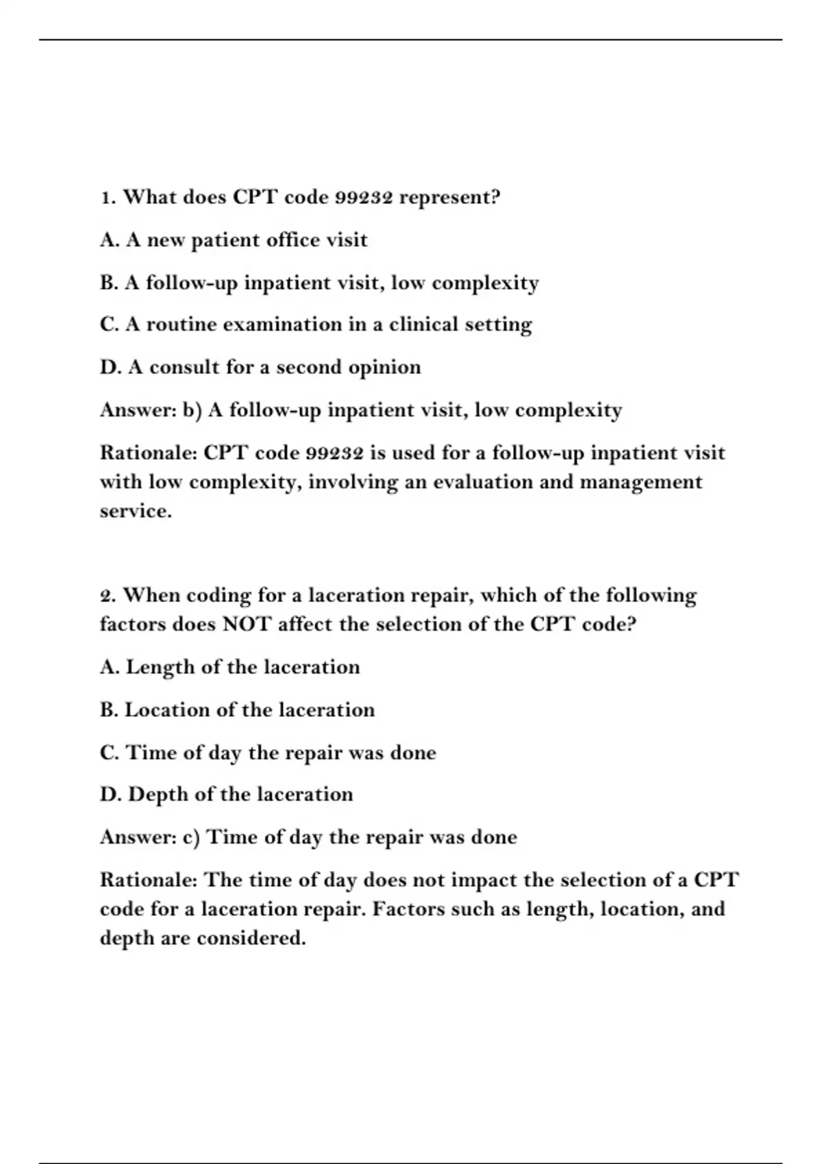 2. When coding for a laceration repair, which of the following