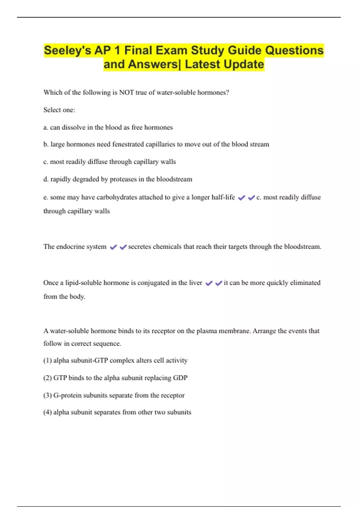 Seeley's AP 1 Final Exam Study Guide Questions and Answers| Latest Update