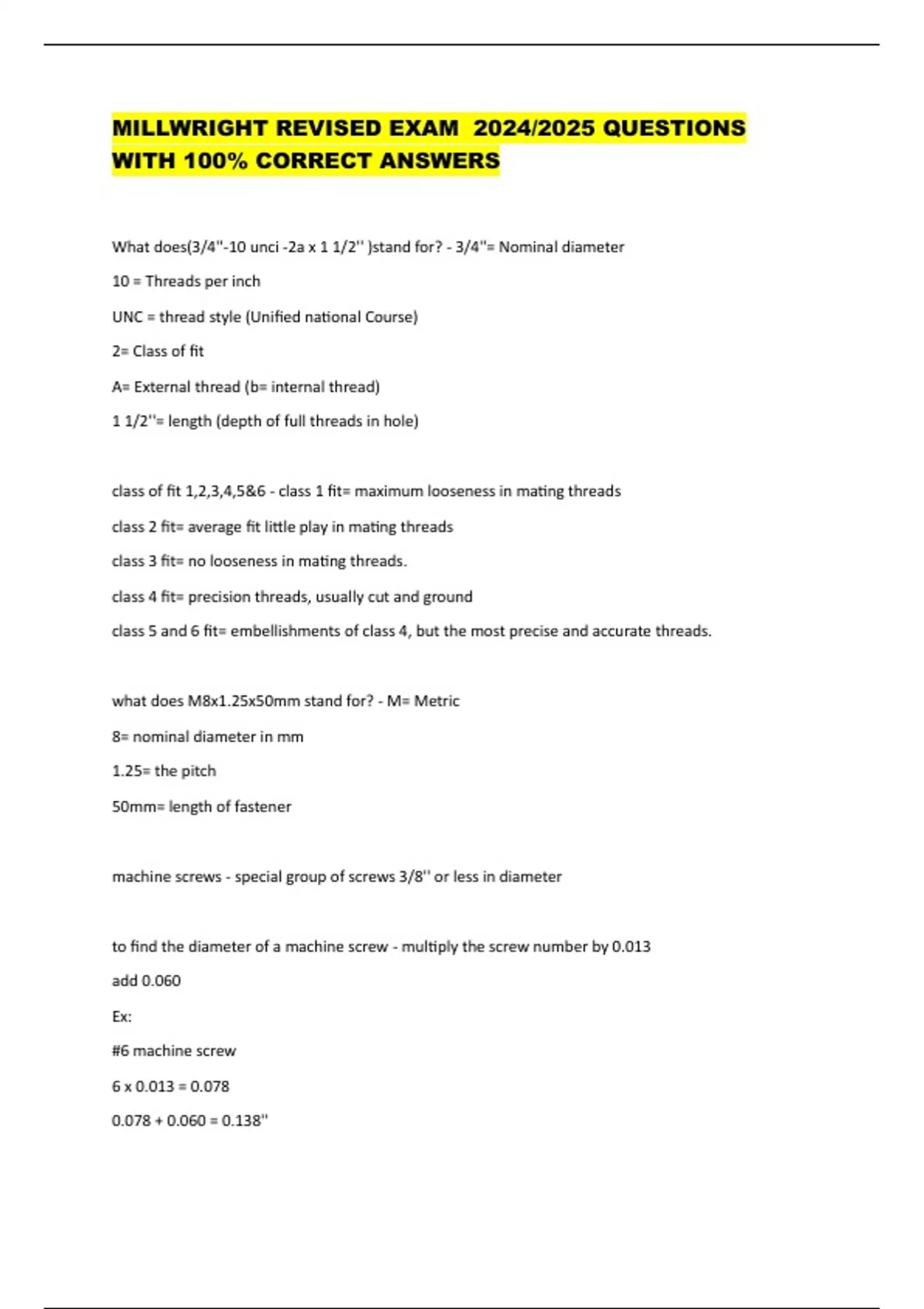 What does(3/4''-10 unci -2a x 1 1/2'' )stand for? - 3/4''= Nominal diameter