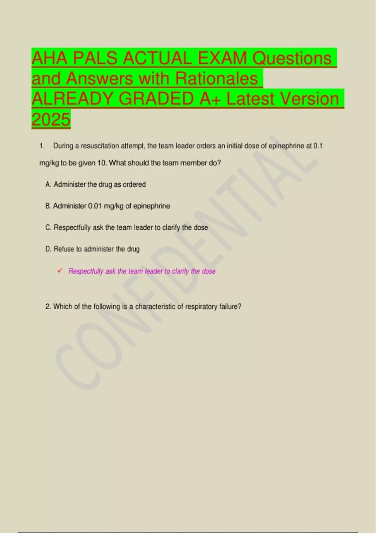 1. During a resuscitation attempt, the team leader orders an initial dose of epinephrine at 0.1