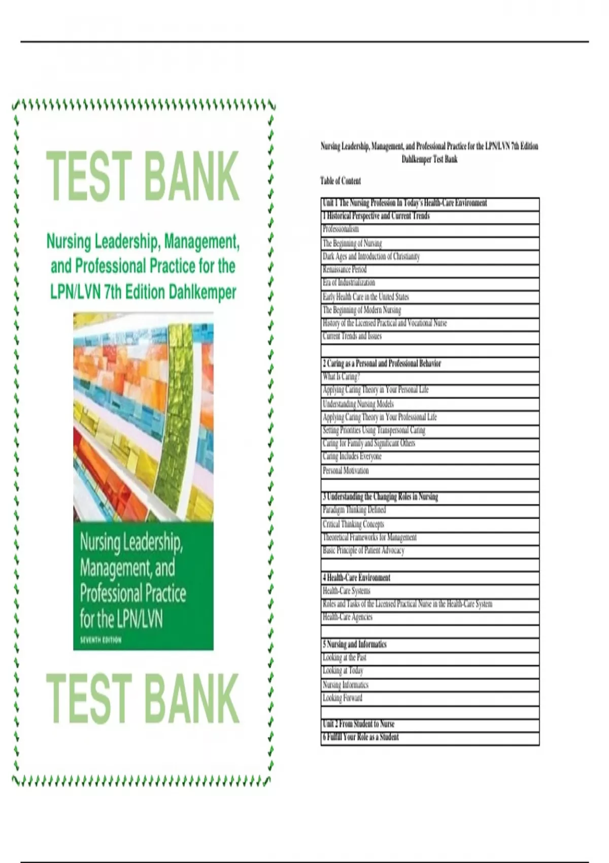 , COMPLETE TEST BANK FOR NURSING LEADERSHIP MANAGEMENT & PROFESSIONAL PRACTICE FOR LPN LVN
