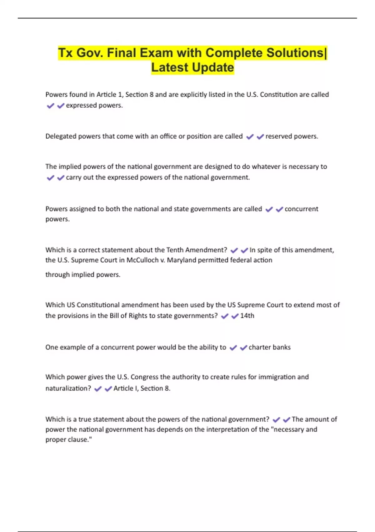 Powers found in Article 1, Section 8 and are explicitly listed in the U.S. Constitution are called