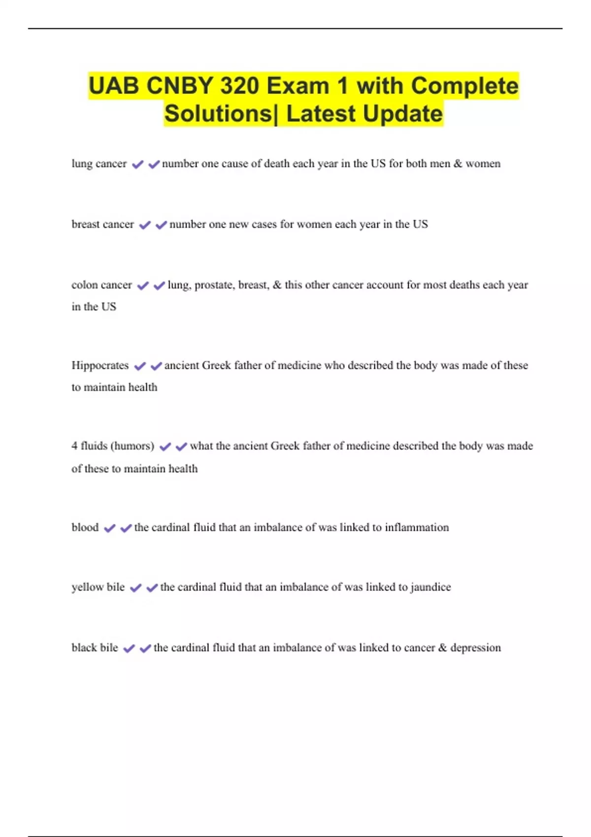 UAB CNBY 320 Exam 1 with Complete Solutions| Latest Update