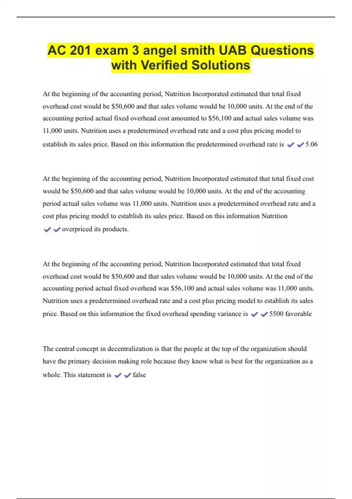 overhead cost would be $50,600 and that sales volume would be 10,000 units. At the end of the
