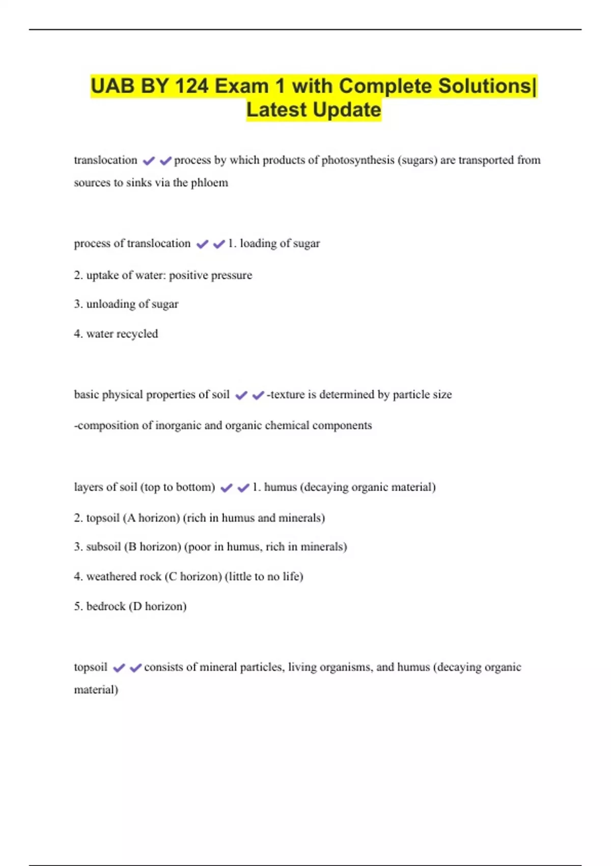 UAB BY 124 Exam 1 with Complete Solutions| Latest Update
