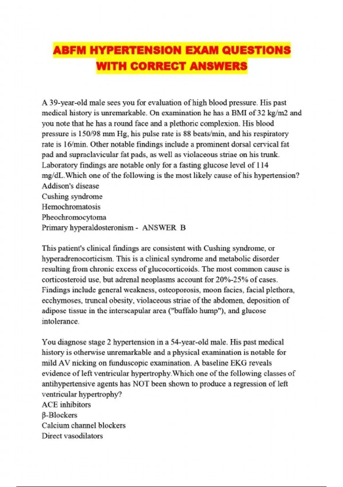 ABFM HYPERTENSION EXAM QUESTIONS WITH CORRECT ANSWERS....