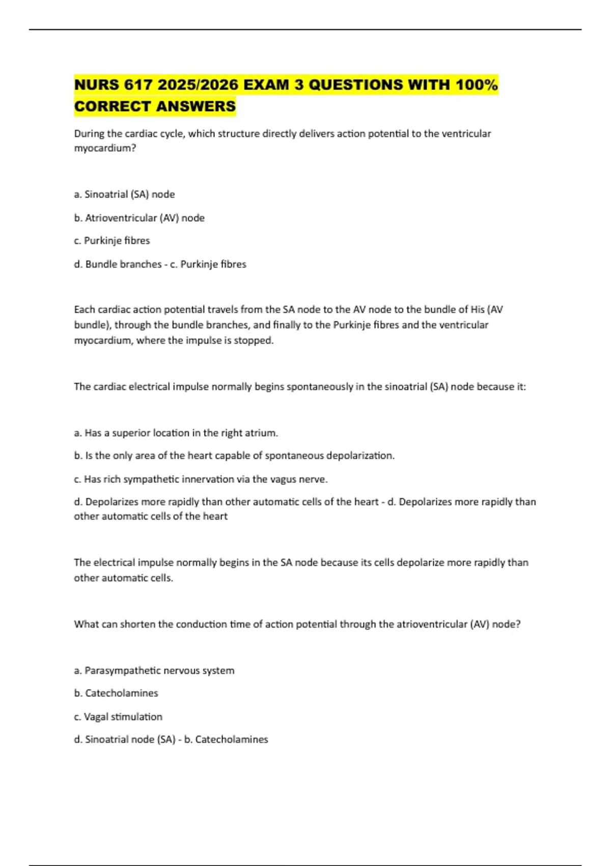 d. Depolarizes more rapidly than other automatic cells of the heart - d. Depolarizes more rapidly than