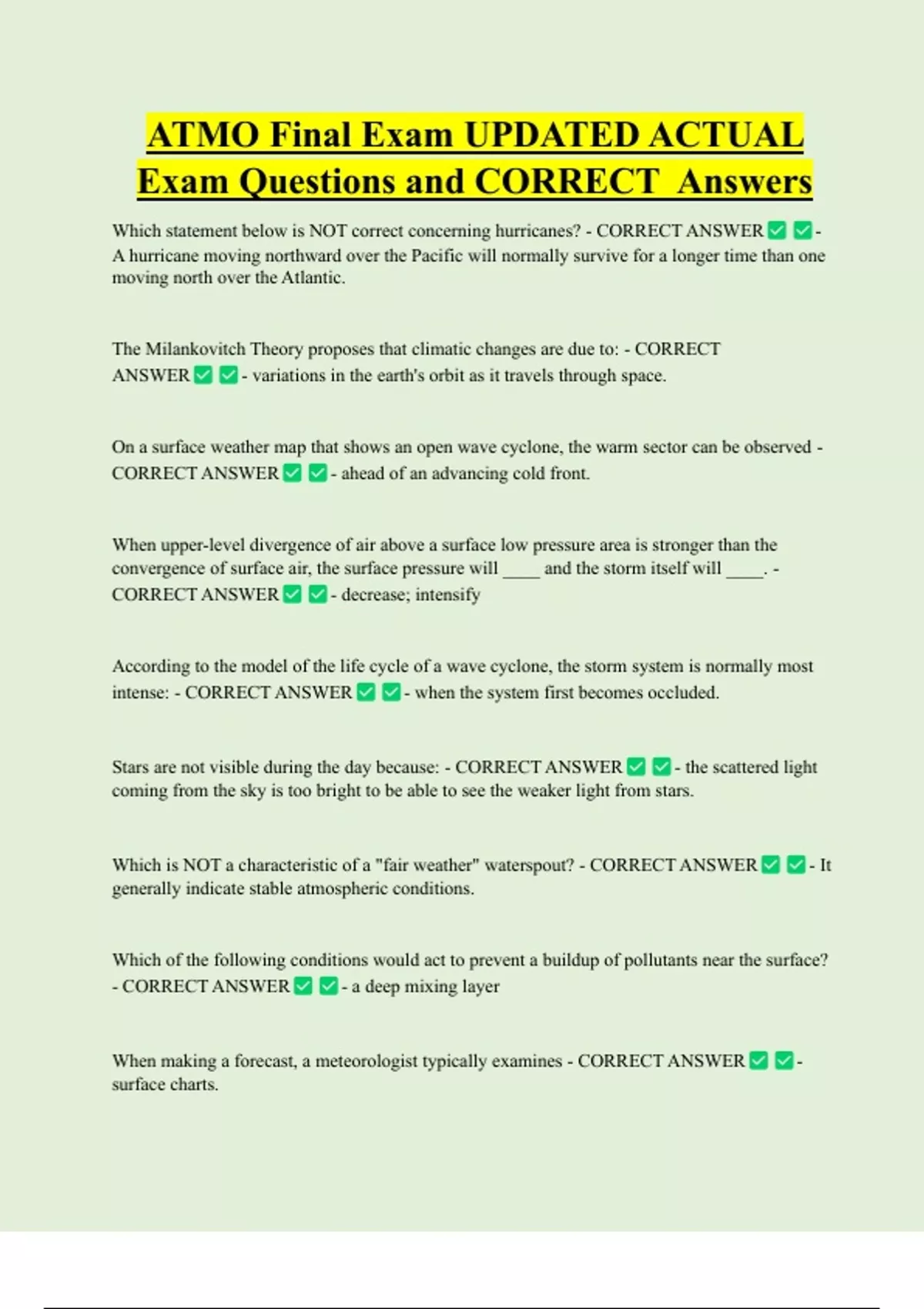 ATMO Final Exam UPDATED ACTUAL Exam Questions and CORRECT Answers