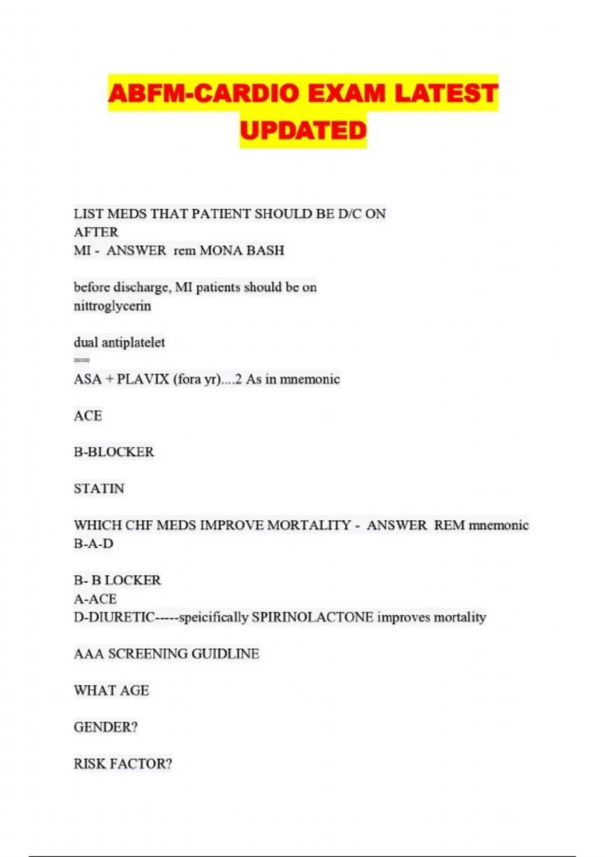 ABFM-CARDIO EXAM LATEST UPDATED....