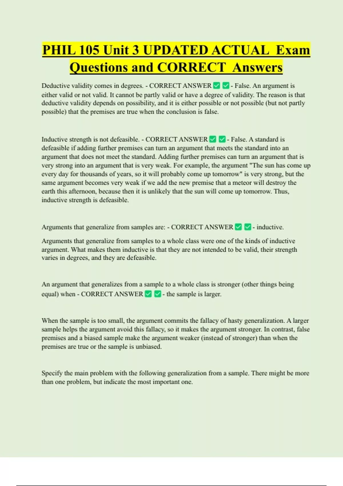 PHIL 105 Unit 3 UPDATED ACTUAL Exam