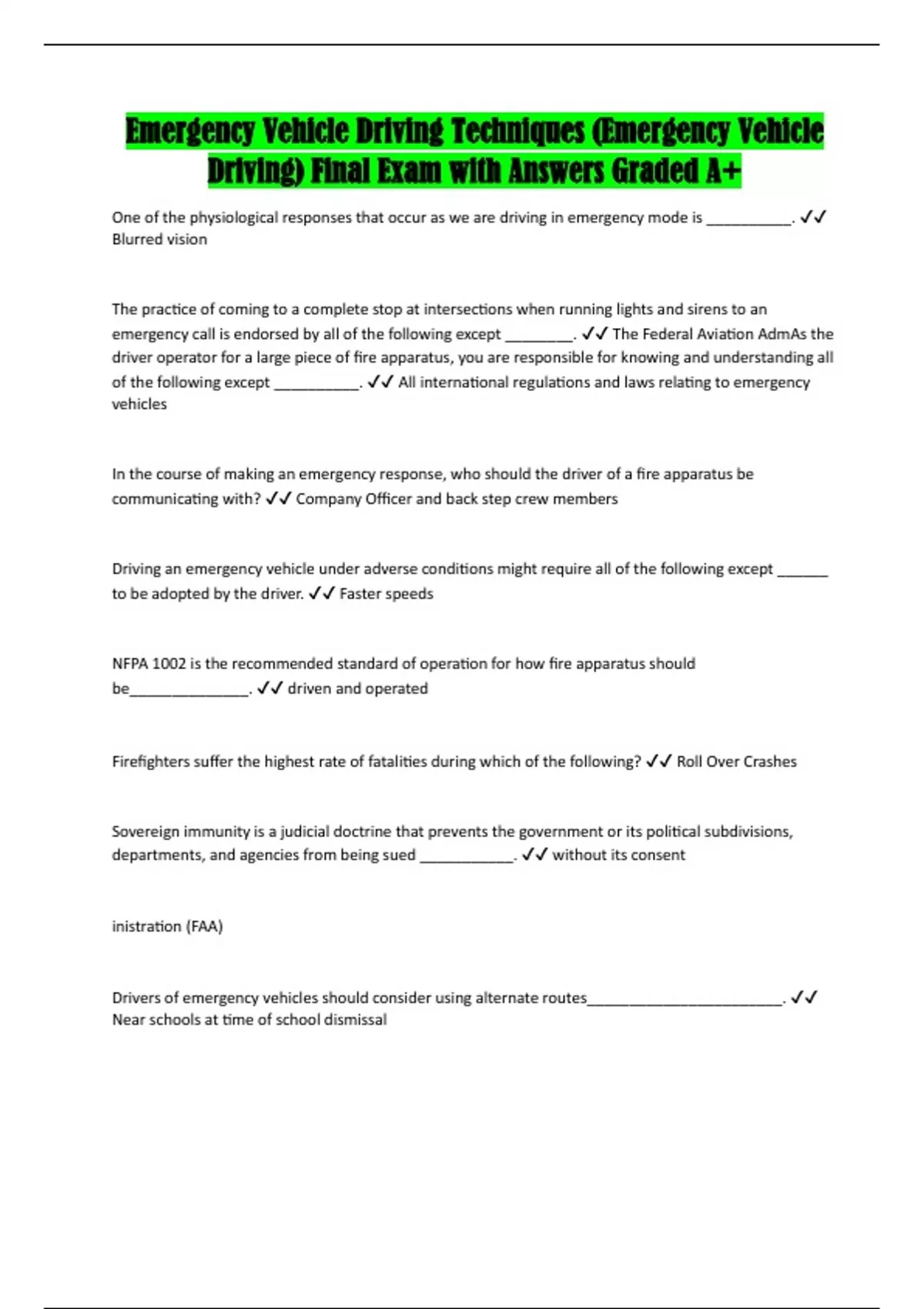 Driving) Final Exam with Answers Graded A+