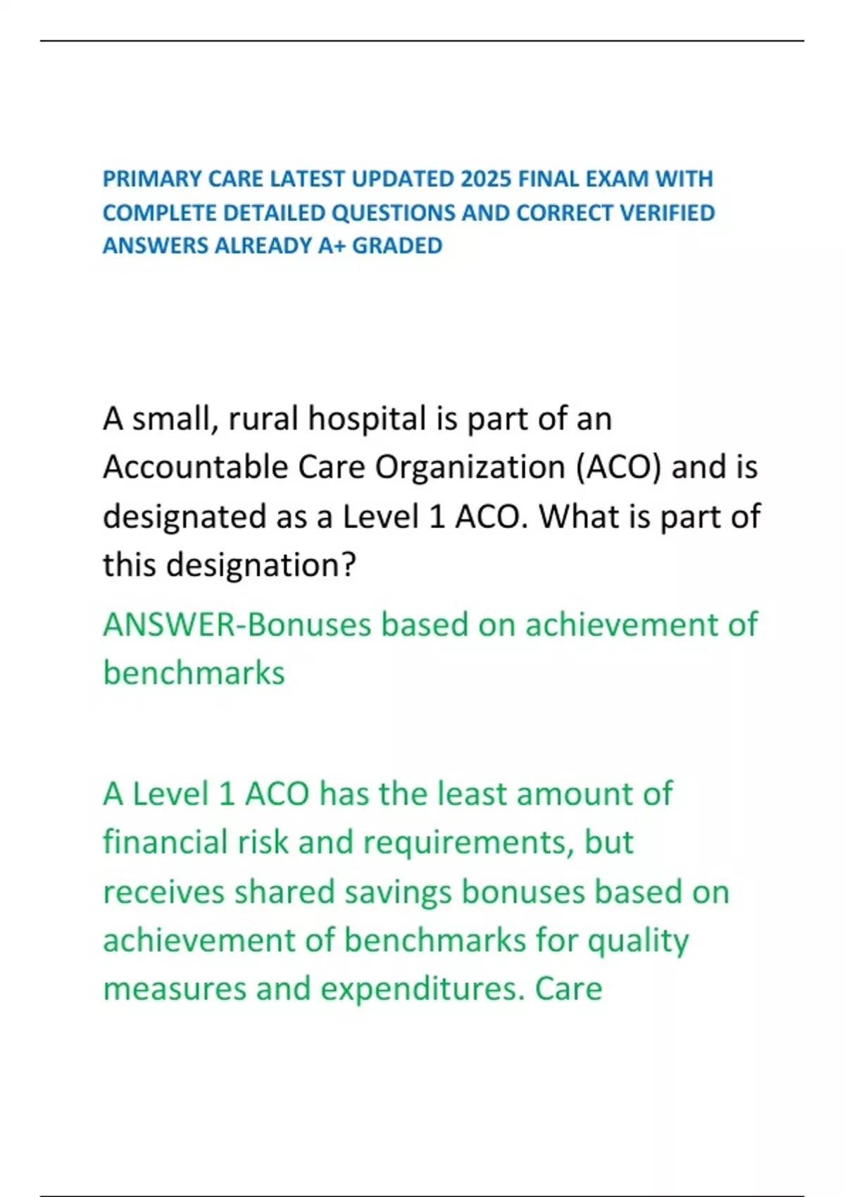PRIMARY CARE LATEST UPDATED 2025 FINAL EXAM WITH