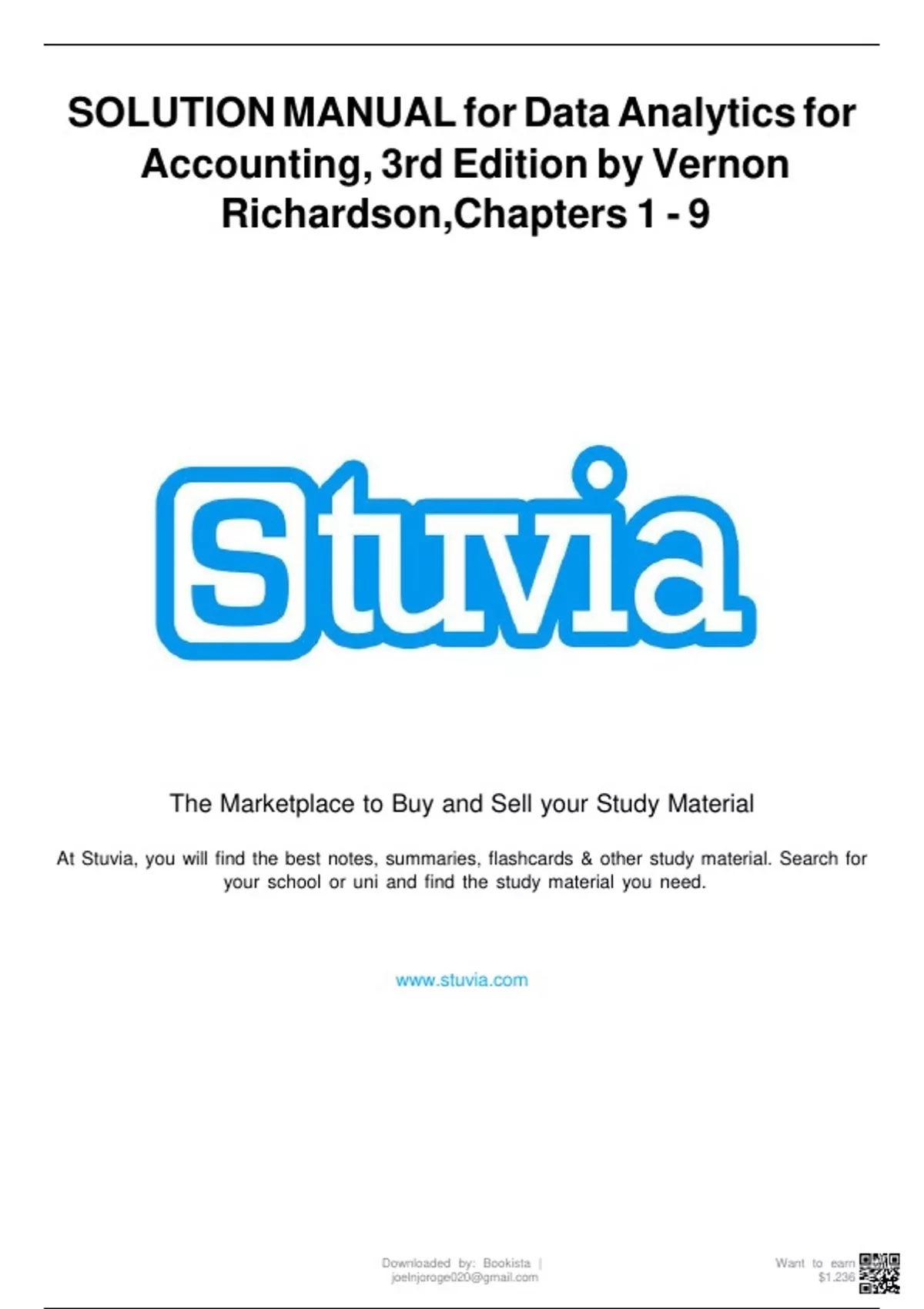 SOLUTION MANUAL for Data Analytics for Accounting, 3rd Edition by Vernon Richardson,Chapters 1 - 9 FULL TESTBANK DOWNLOAD