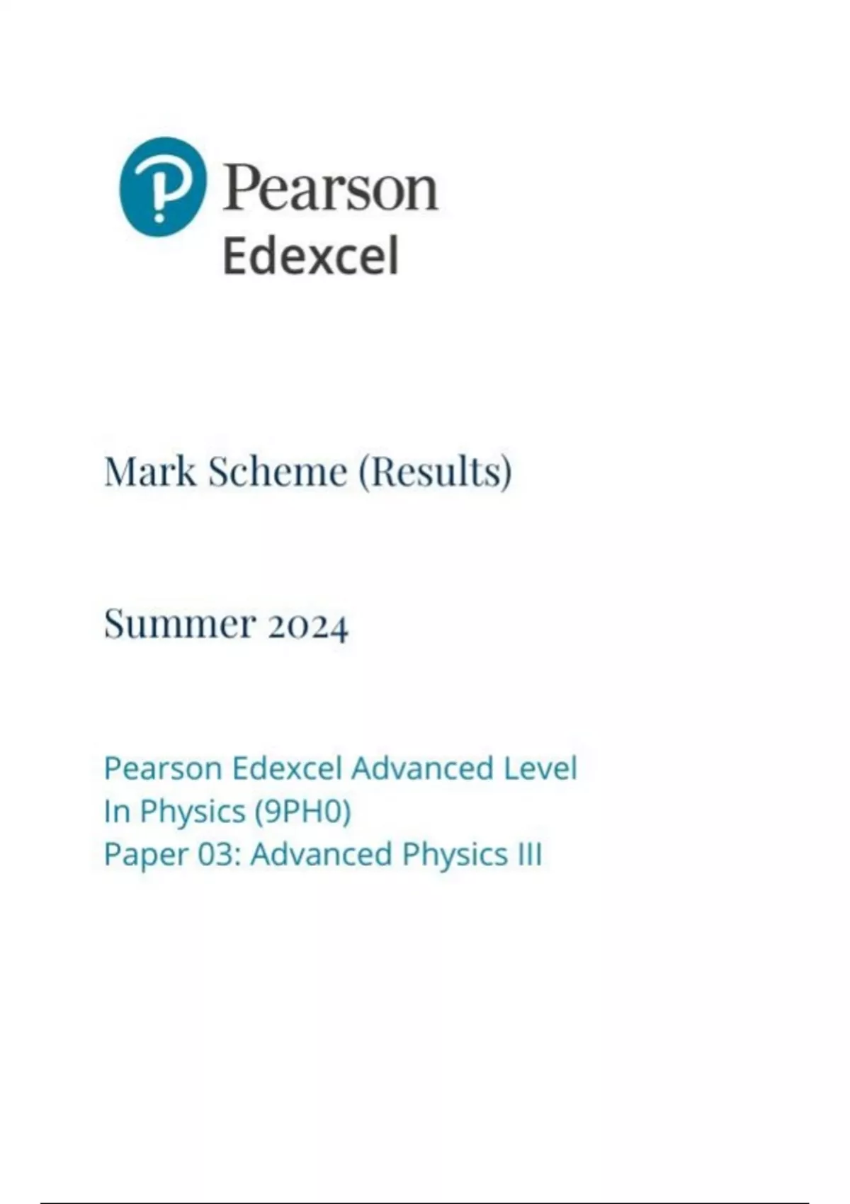 EDEXCEL A LEVEL PHYSICS PAPER 3 JUNE 2024 FINAL MARK SCHEME