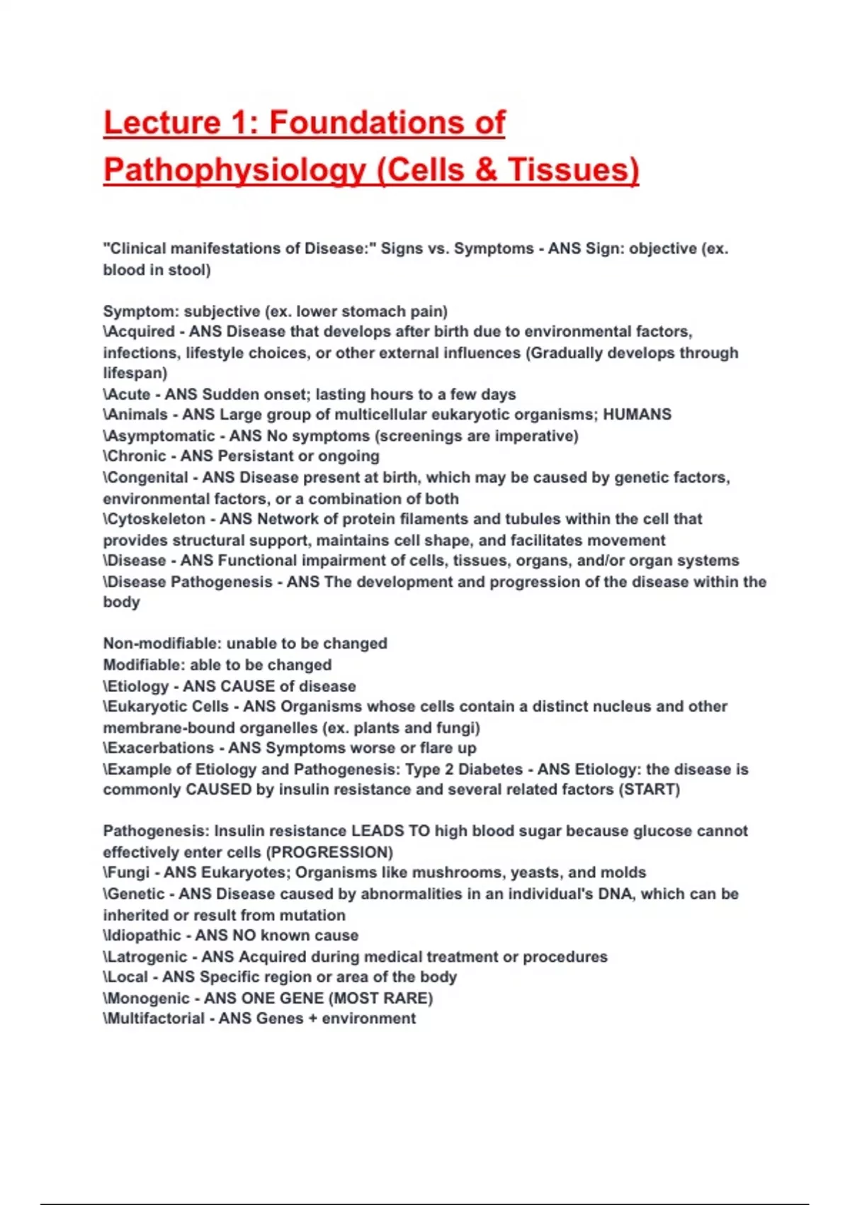 Pathophysiology (Cells & Tissues)