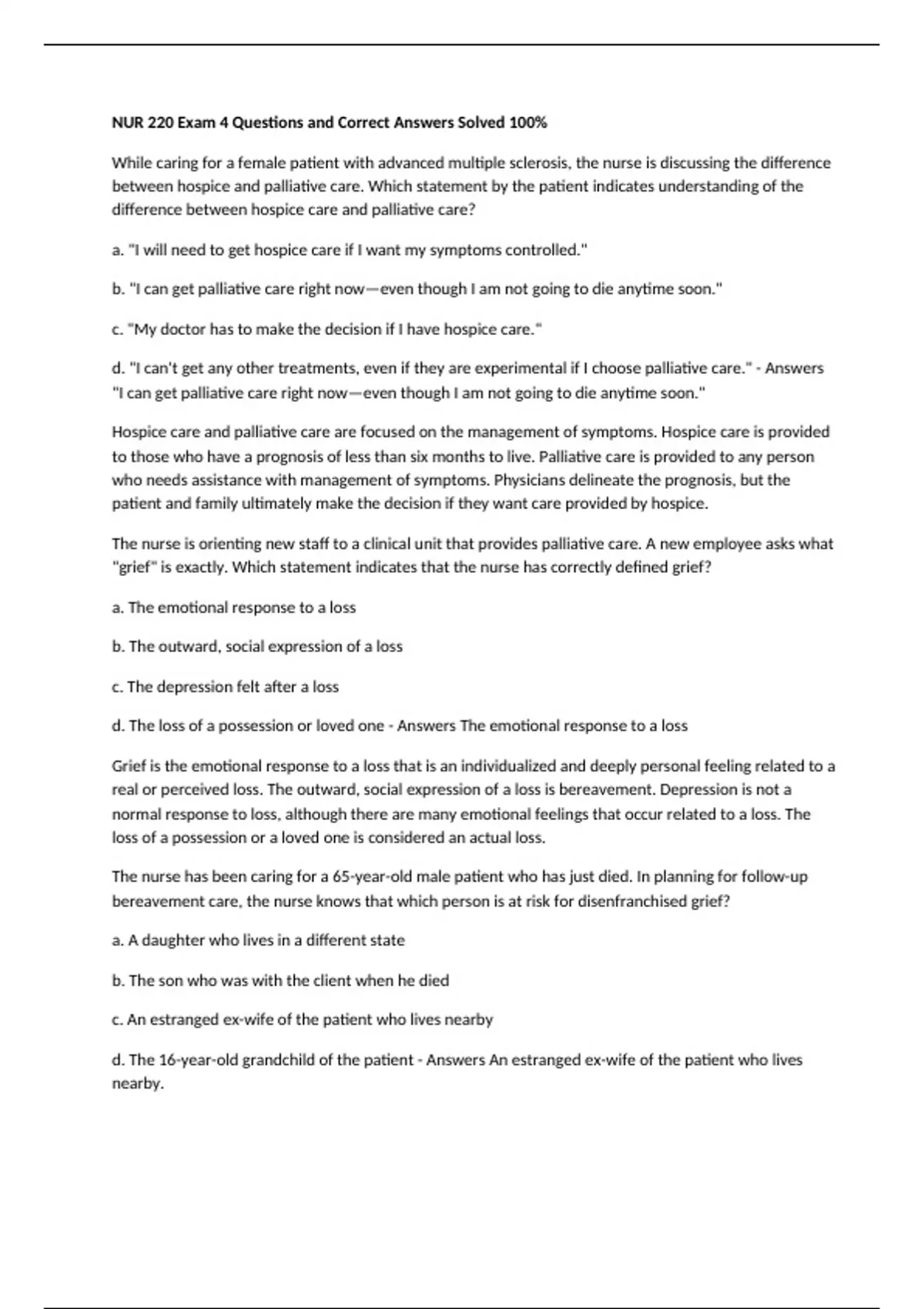 a. "I will need to get hospice care if I want my symptoms controlled."