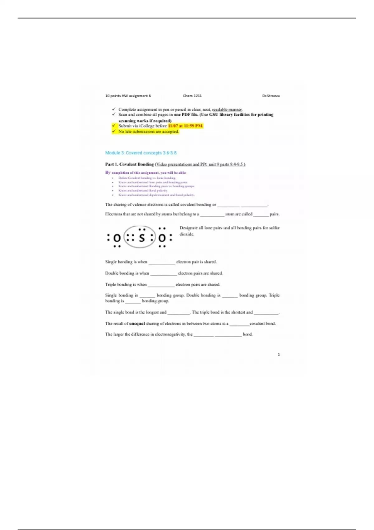, 10 points HW assignment 6 Chem 1211 Dr.Stroeva