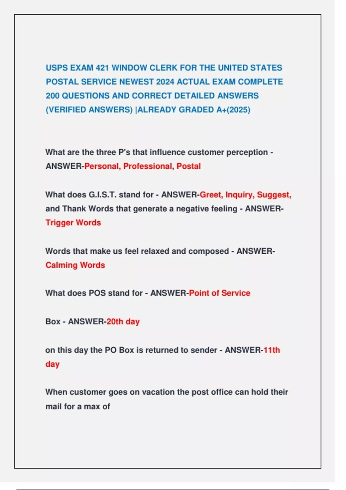 POSTAL SERVICE NEWEST 2024 ACTUAL EXAM COMPLETE