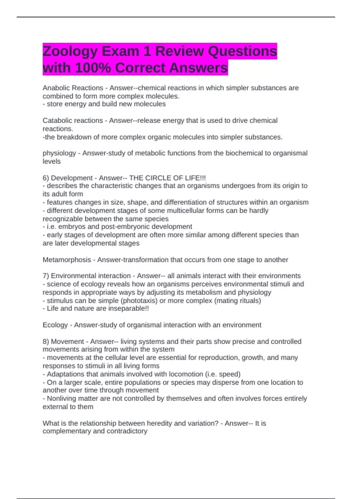 Zoology Exam 1 Review Questions with 100% Correct Answers