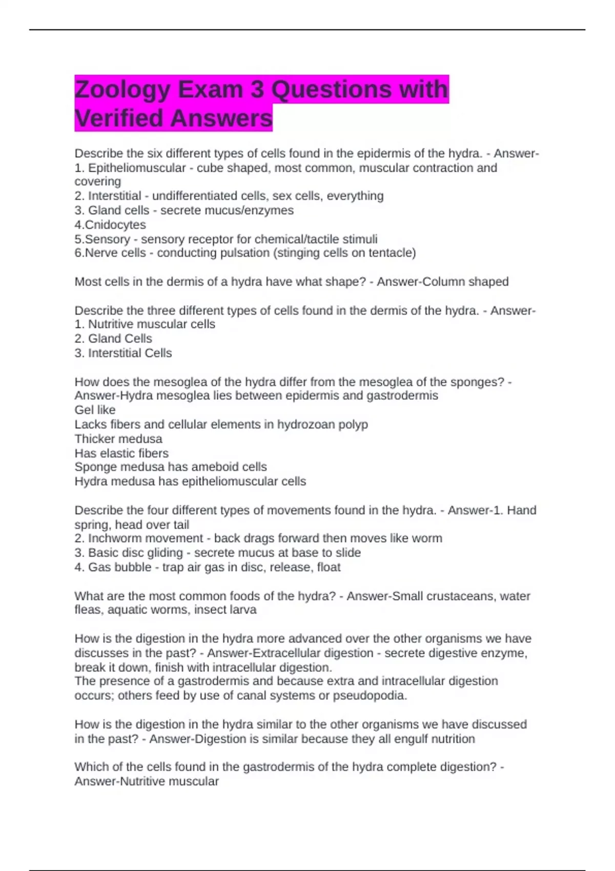 What is the function of the statocyst? - Answer-Specialized cell that keeps