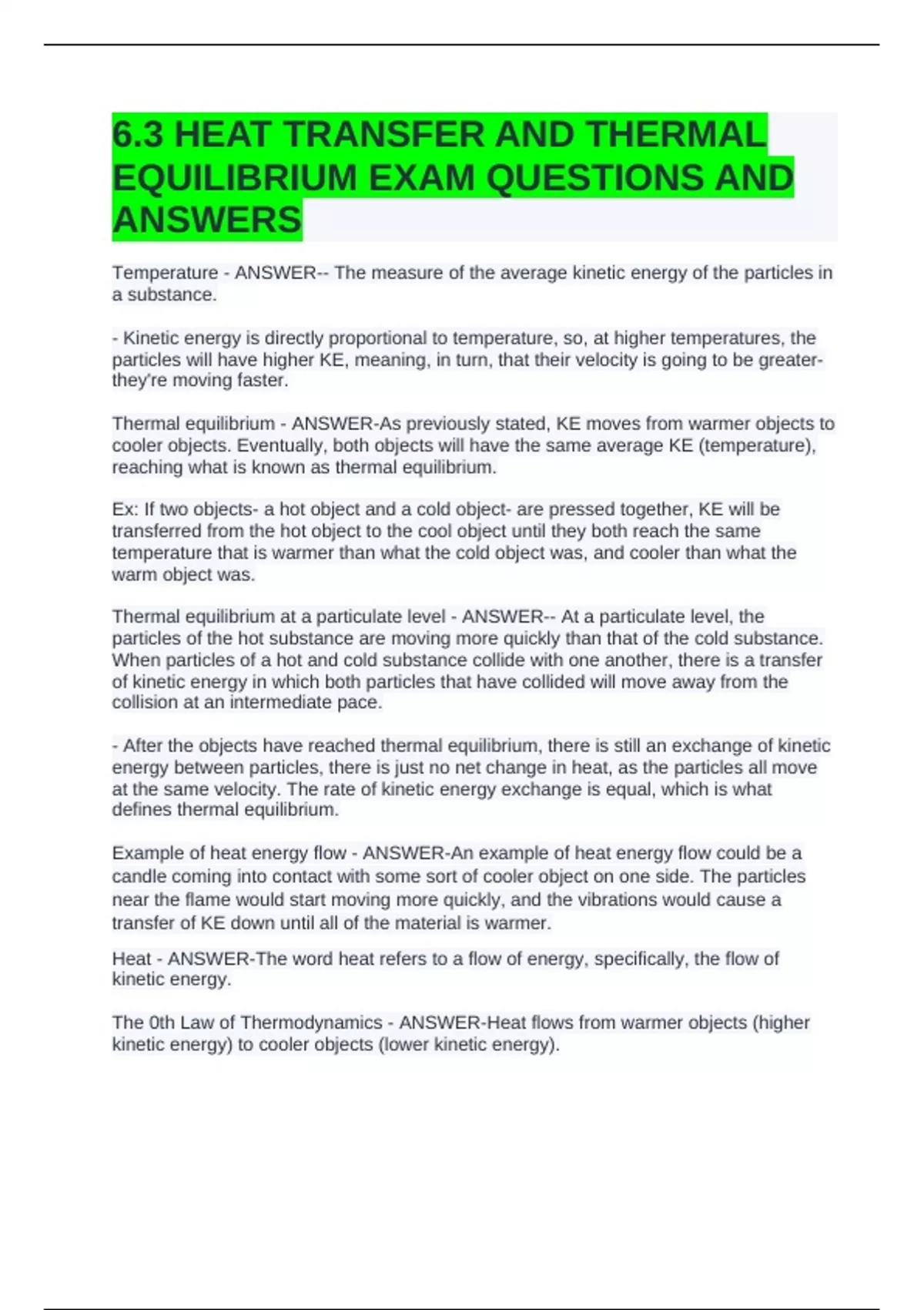 Thermal equilibrium - ANSWER-As previously stated, KE moves from warmer objects to