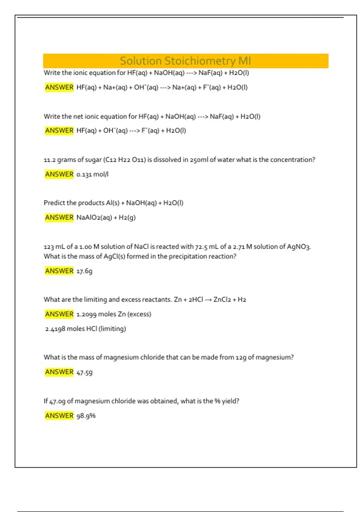 ANSWER NaAlO2(aq) + H2(g)