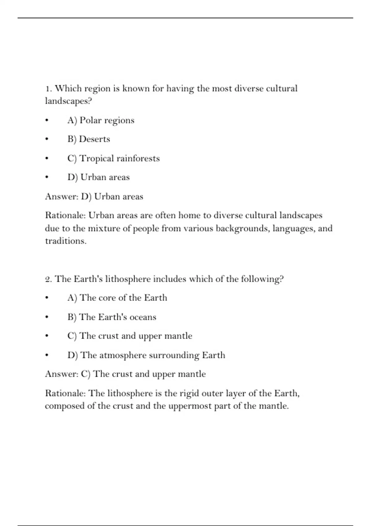 2. The Earth's lithosphere includes which of the following?