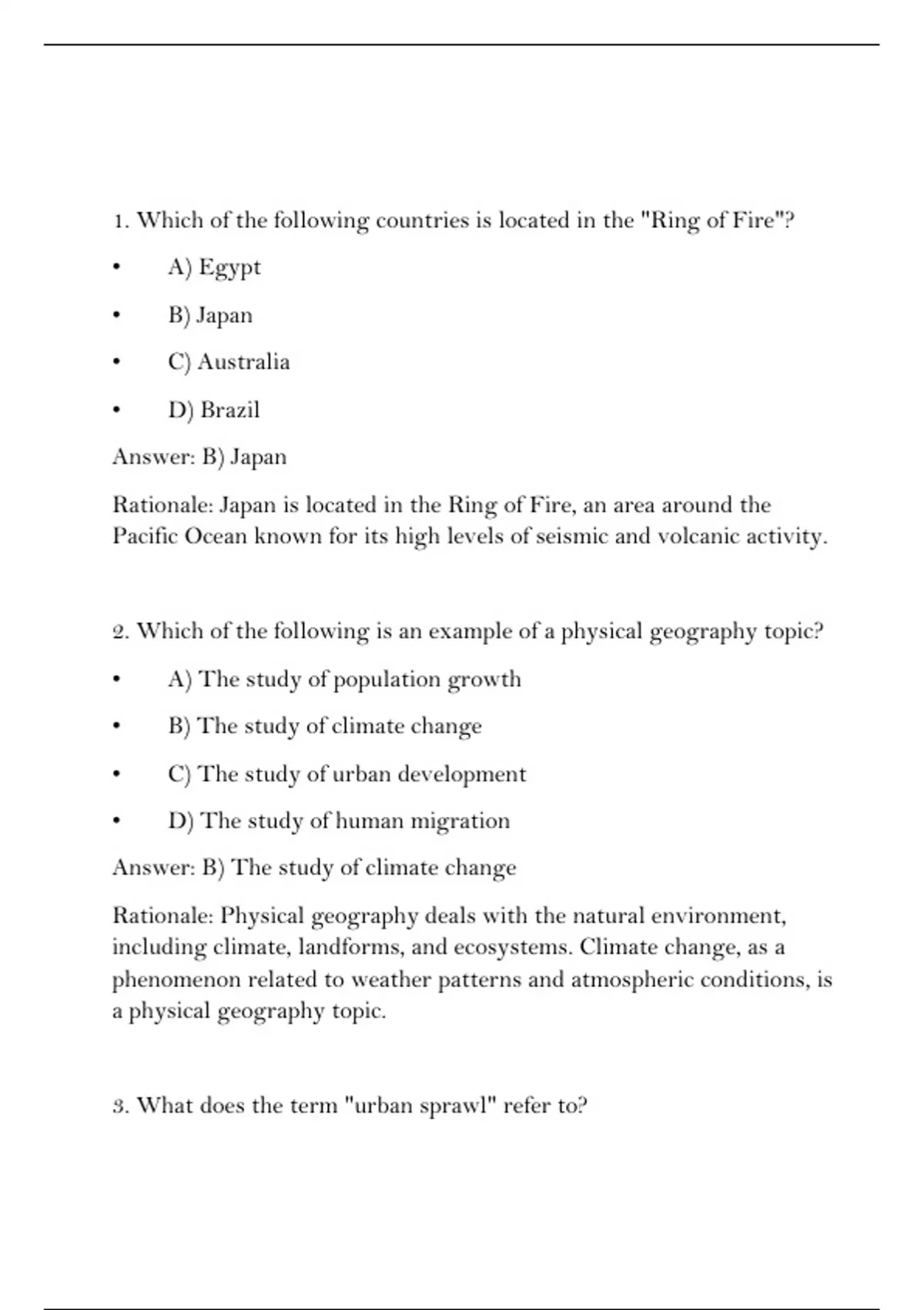 Rationale: Urban sprawl refers to the uncontrolled or poorly planned