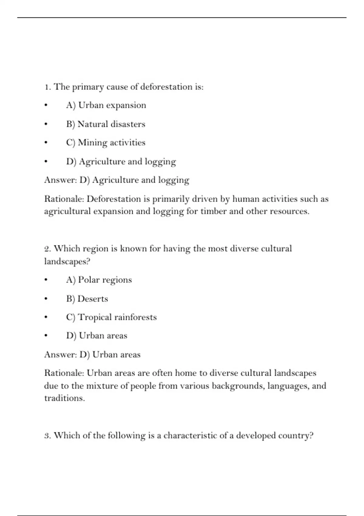 3. Which of the following is a characteristic of a developed country?
