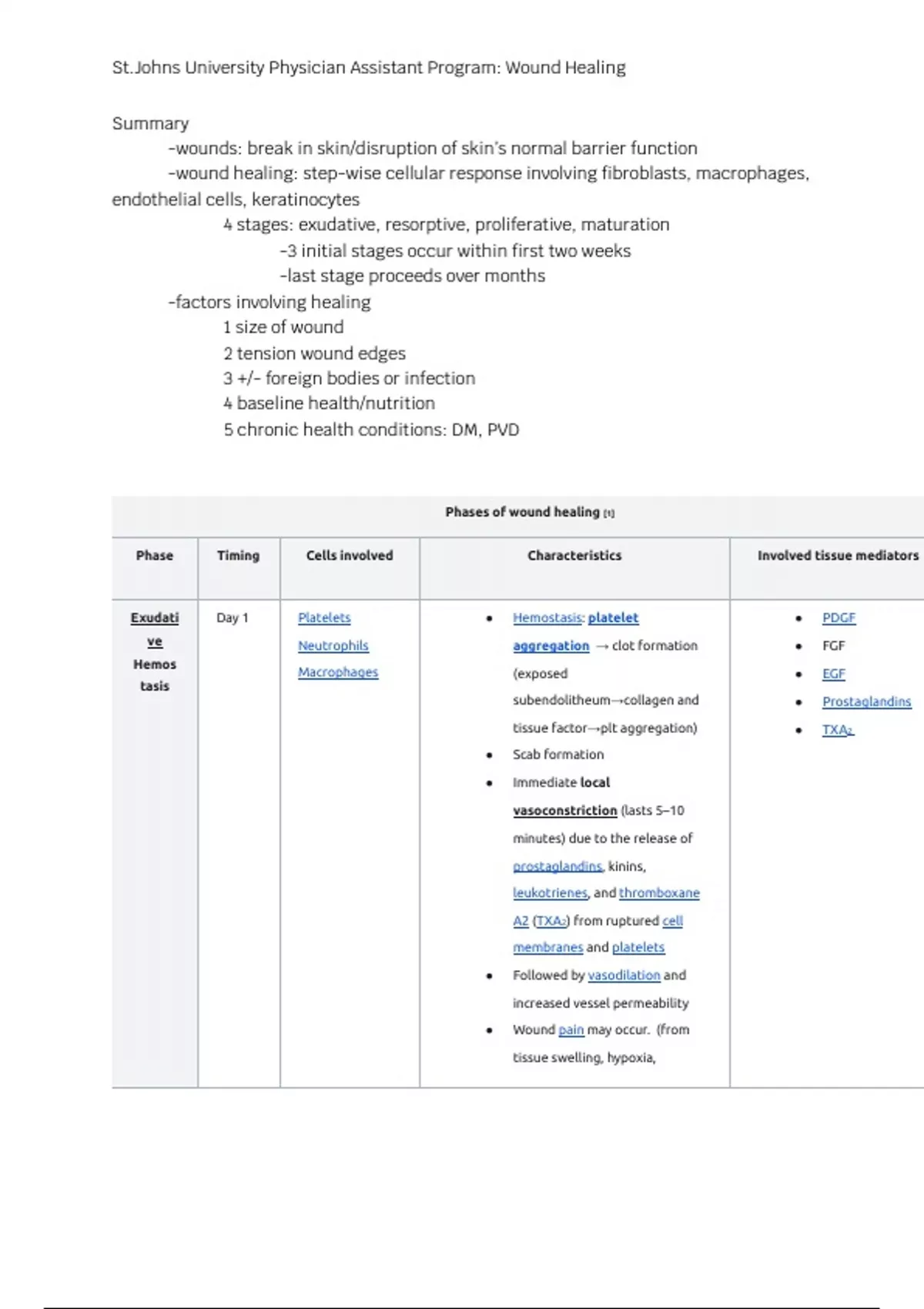 Exudati Day 1 Platelets ● Hemostasis: platelet ● PDGF