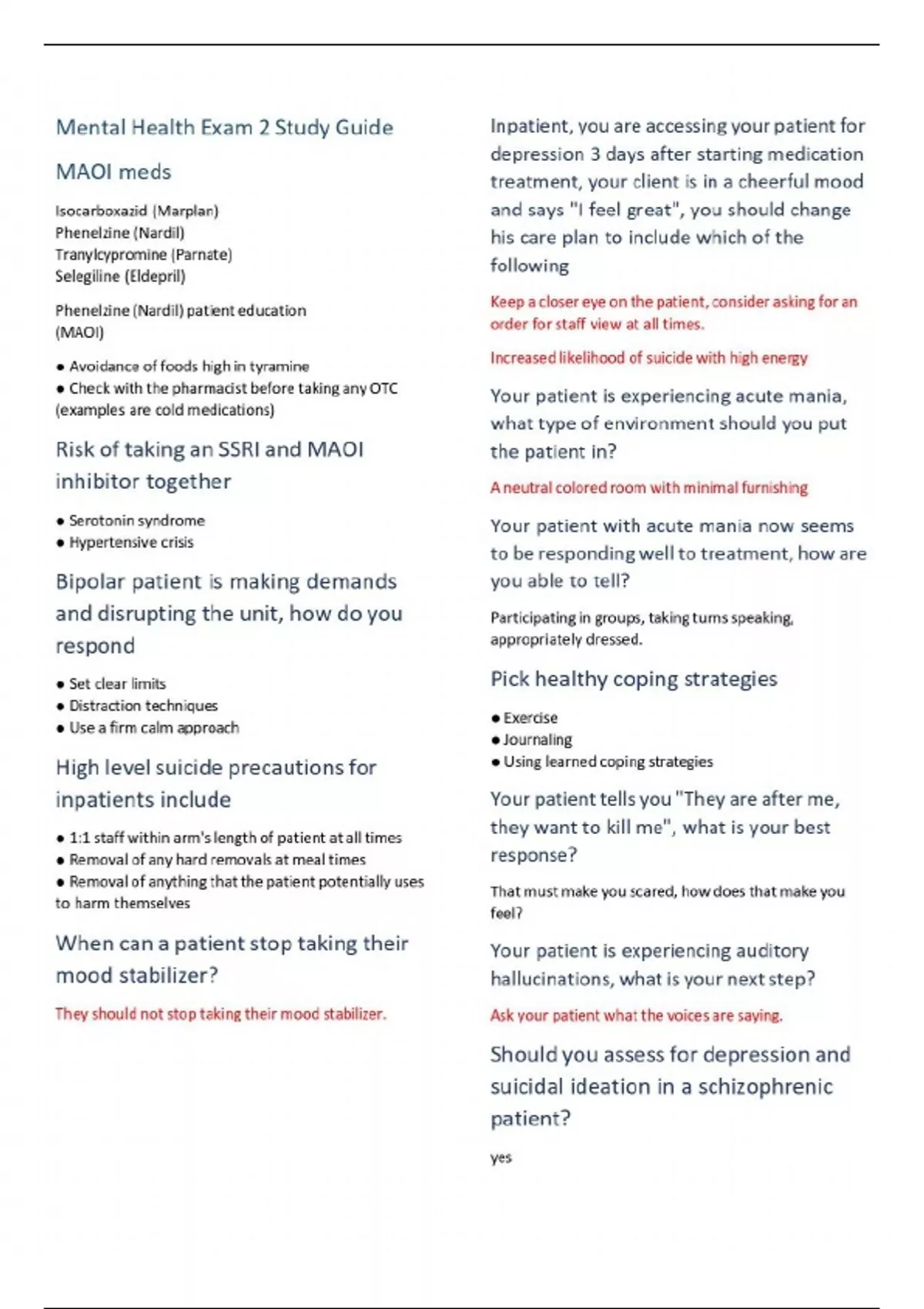 Mental Health Exam 2 Study Guide Notes