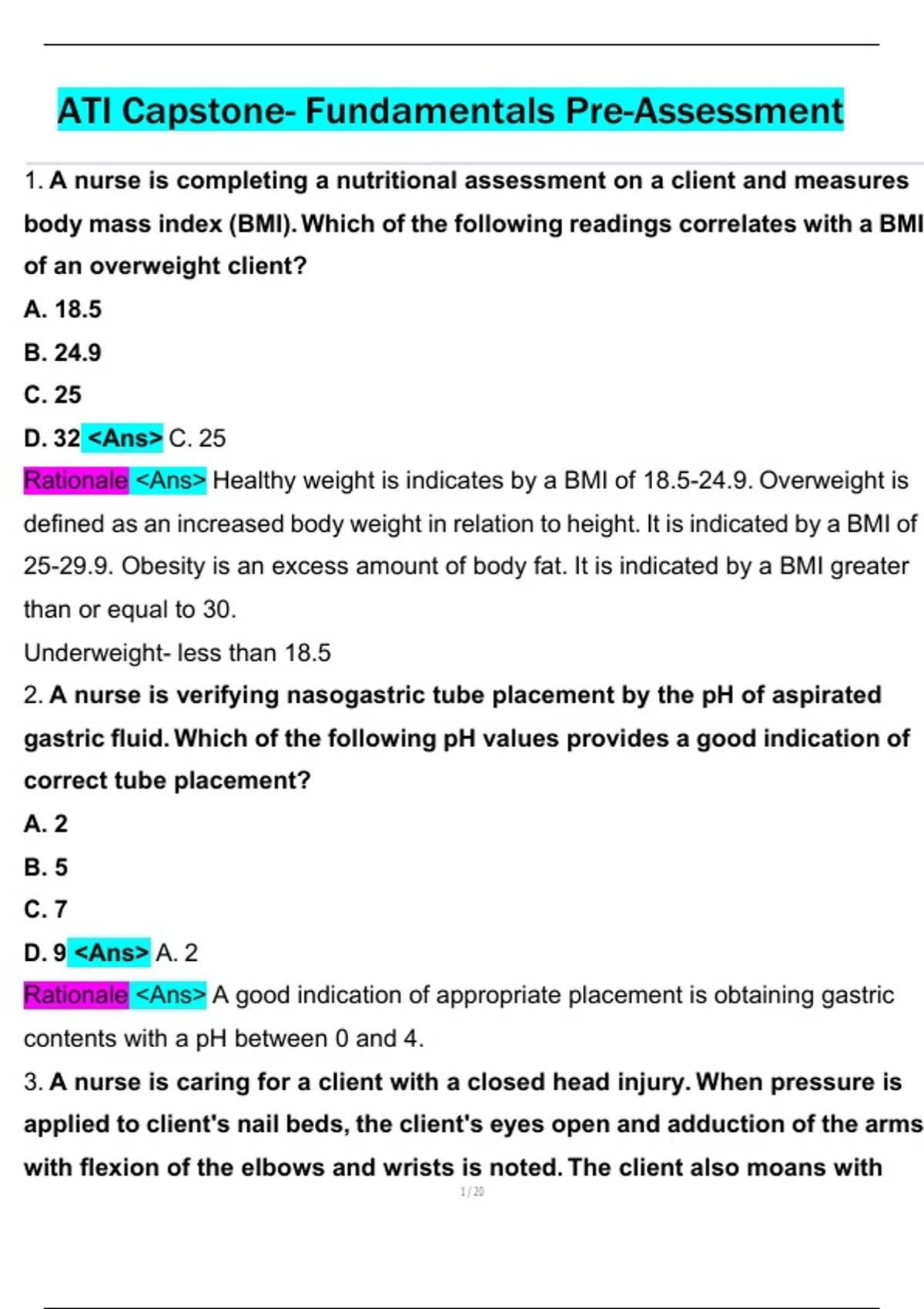 ATI Capstone- Fundamentals Pre- Assessment Questions and Answers 100% Pass