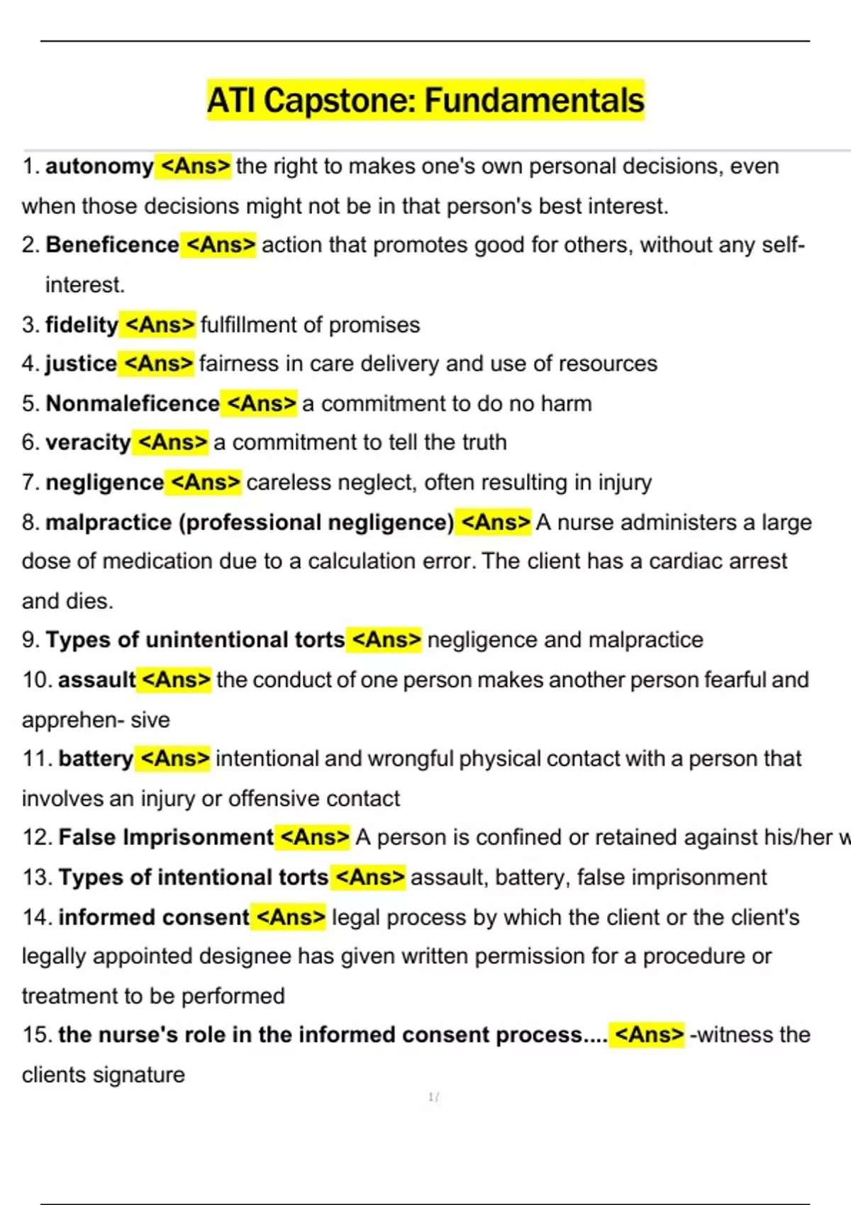 1. autonomy <Ans> the right to makes one's own personal decisions, even