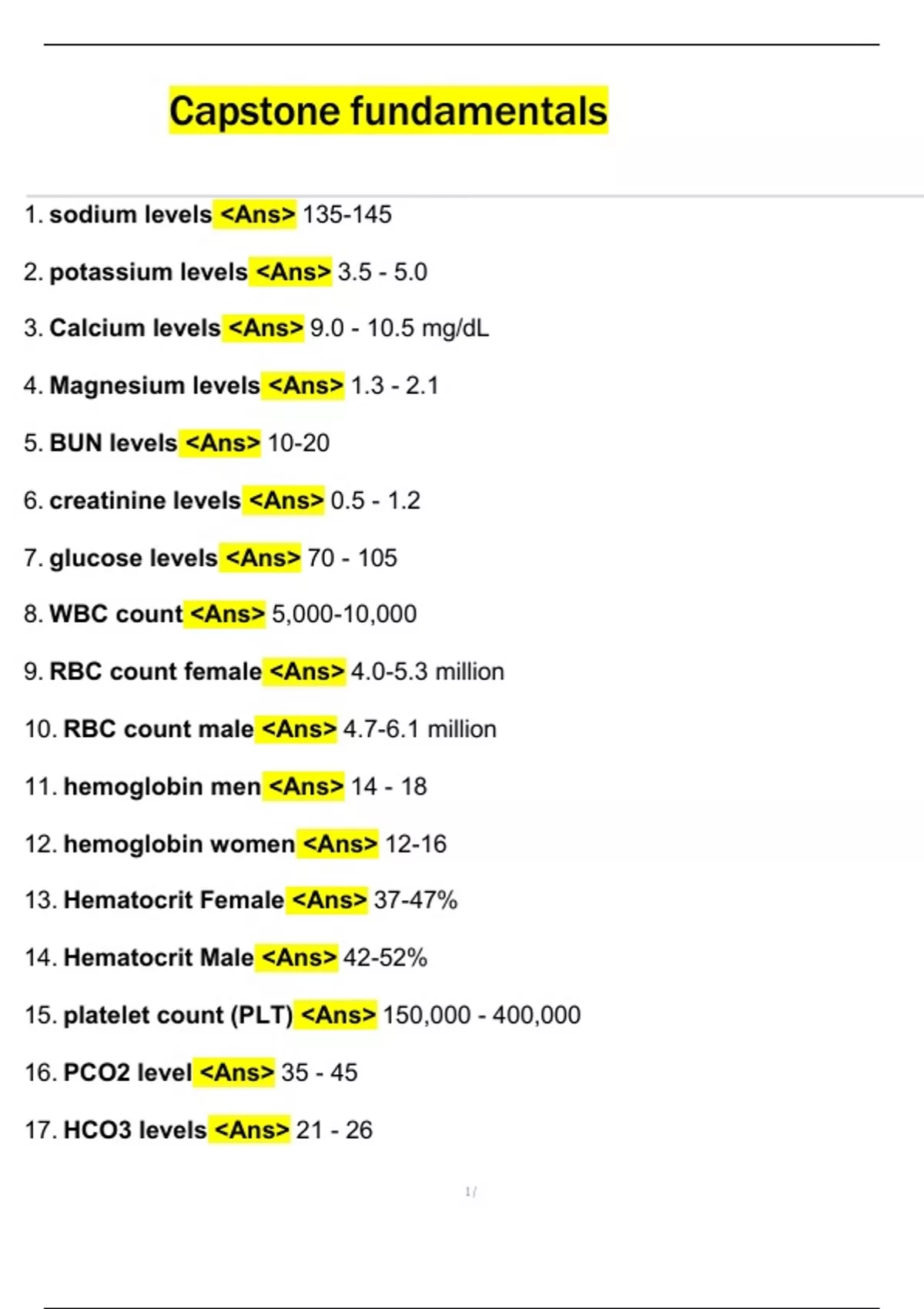 3. Calcium levels <Ans> 9.0 - 10.5 mg/dL
