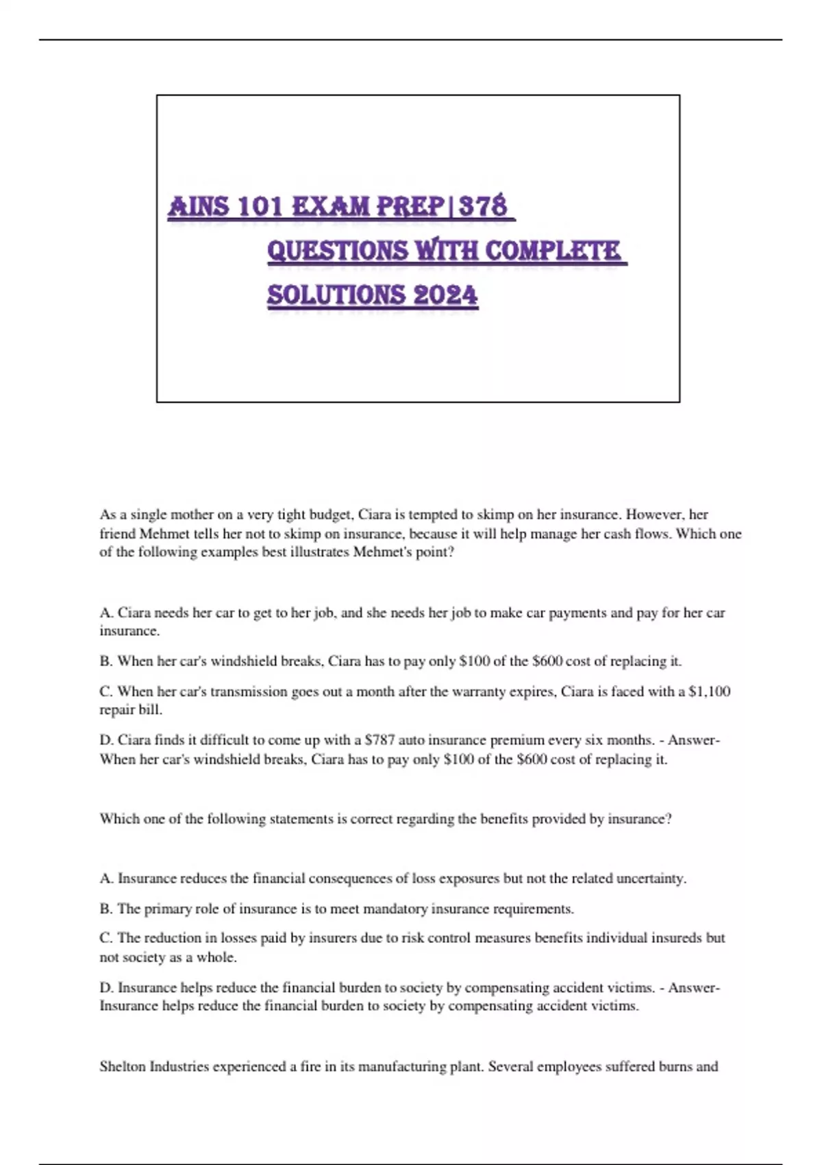 D. Insurance benefits society as a whole. - Answer- Insureds share the cost of each other's losses.