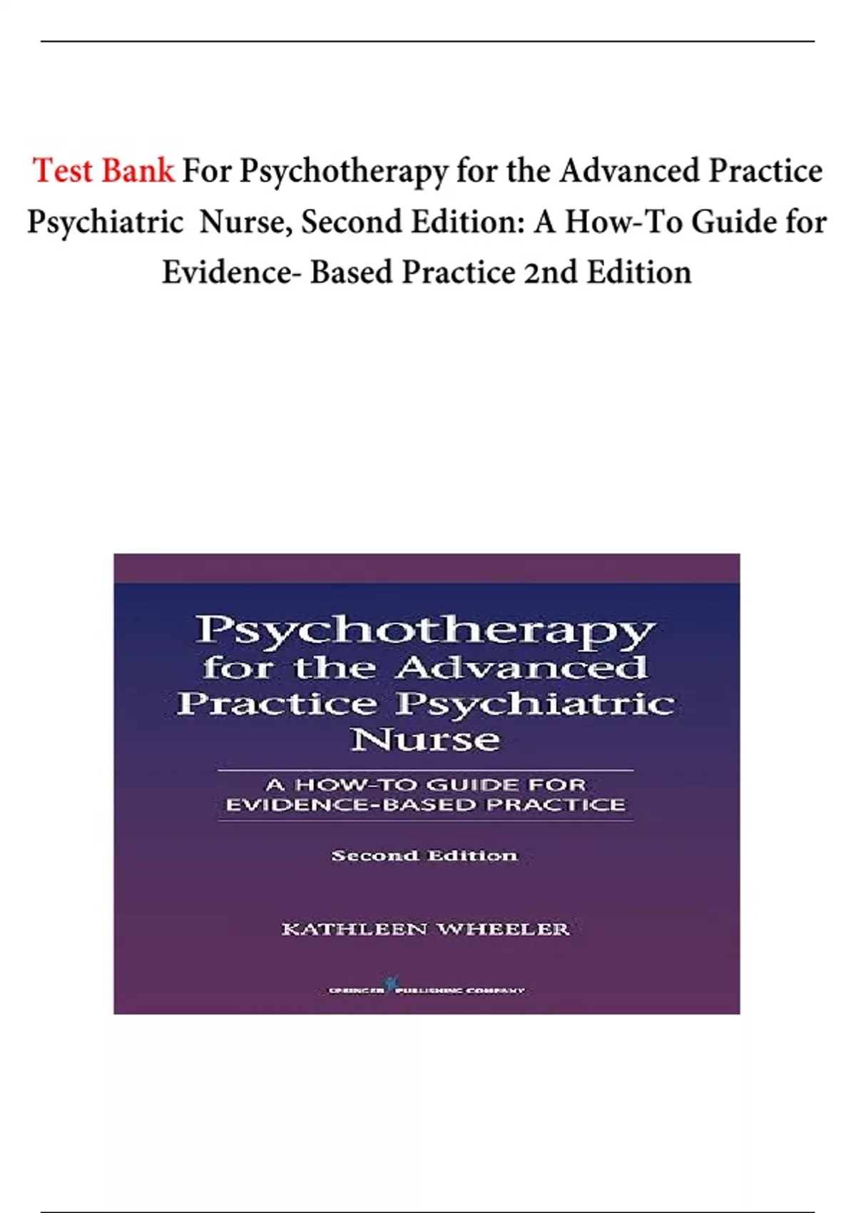 TEST BANK PSYCHOTHERAPY FOR THE ADVANCED PRACTICE PSYCHIATRIC NURSE: A HOW TO GUIDE FOR EVIDENCE -BASED PRACTICE 3RD EDITION KATHLEEN WHEELERCHAPTER 1- 24 RATED A.