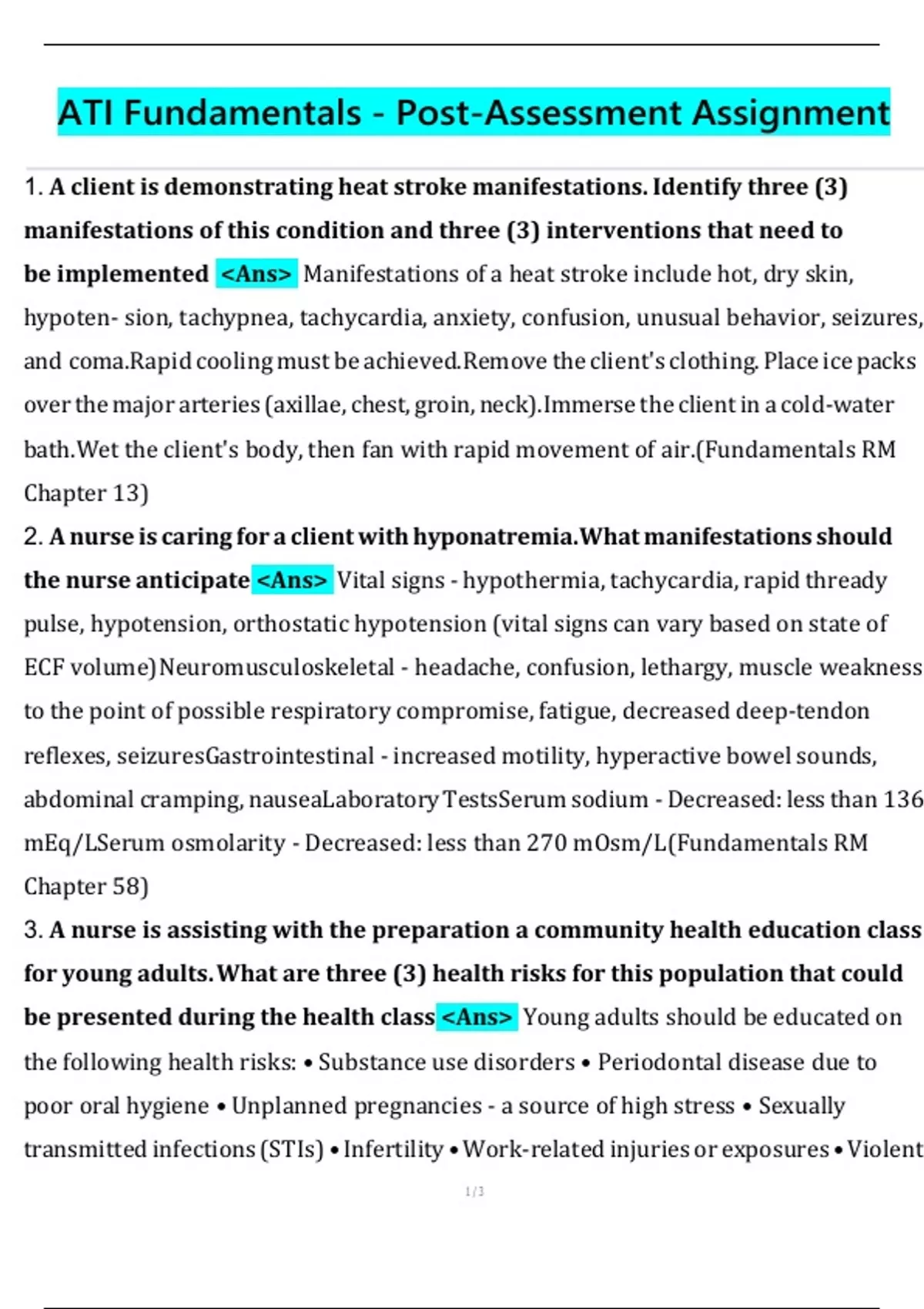 ATI Fundamentals - Post-Assessment Assignment