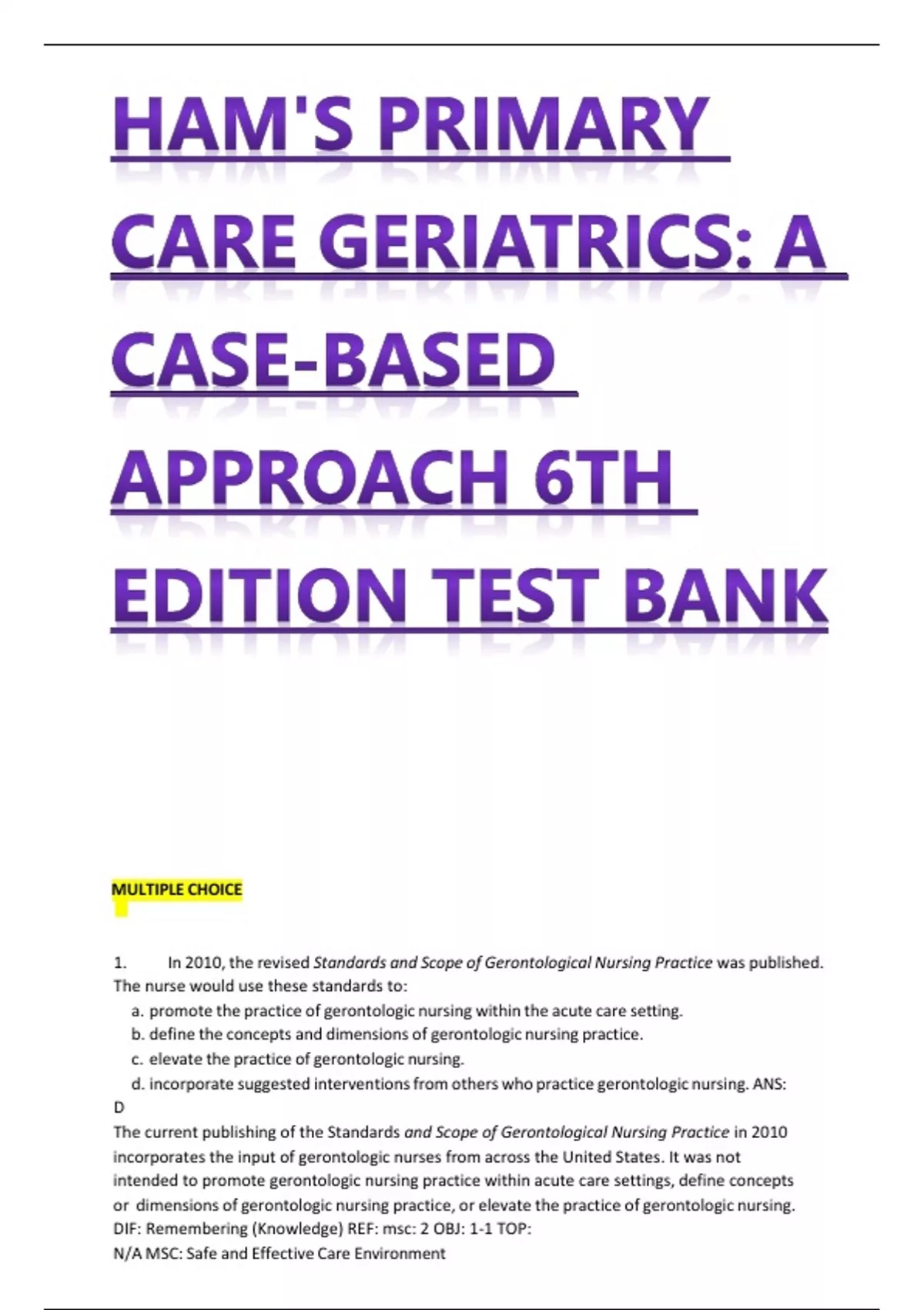 1. In 2010, the revised Standards and Scope of Gerontological Nursing Practice was published.