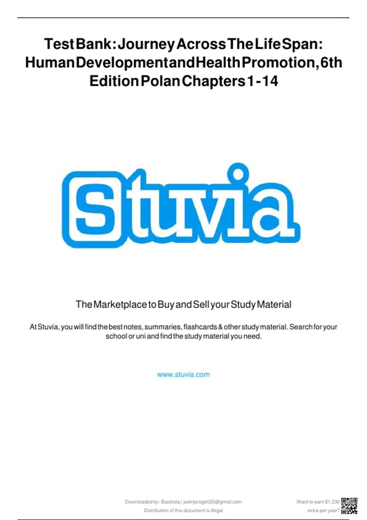 Test Bank:Journey Across The Life Span: Human Development and Health Promotion, 6th