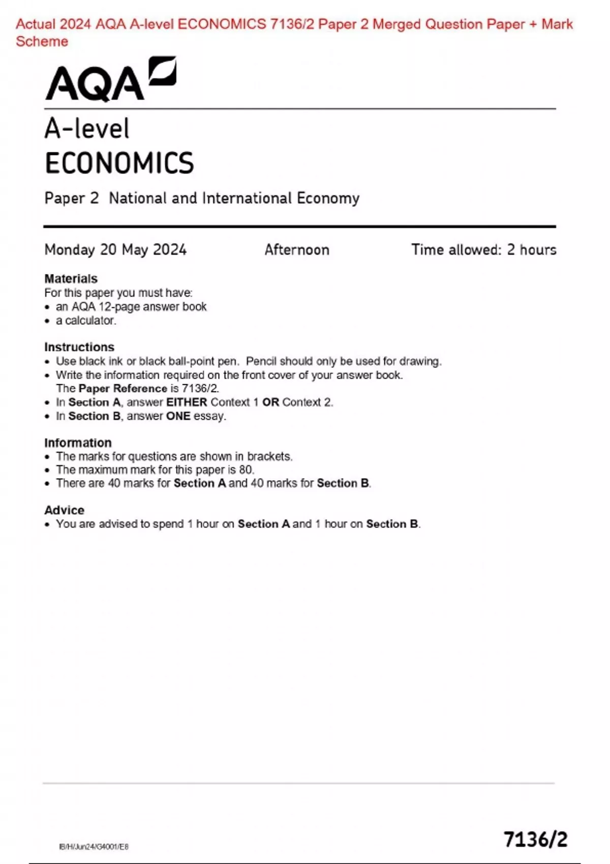 Actual 2024 AQA GCSE DESIGN AND TECHNOLOGY 8552/W Unit 1 Written Paper Merged Question Paper + Mark Scheme