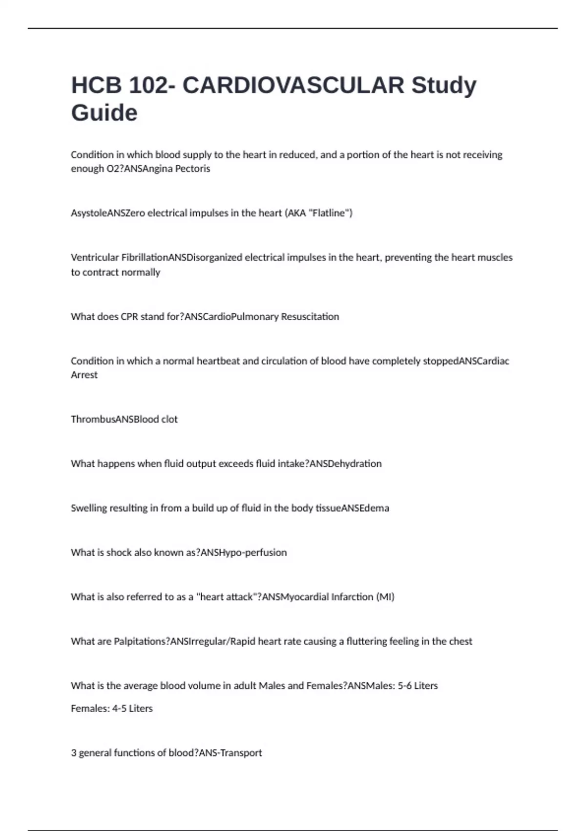 HCB 102- CARDIOVASCULAR Study Guide Exam Questions And Correct Answers 2025