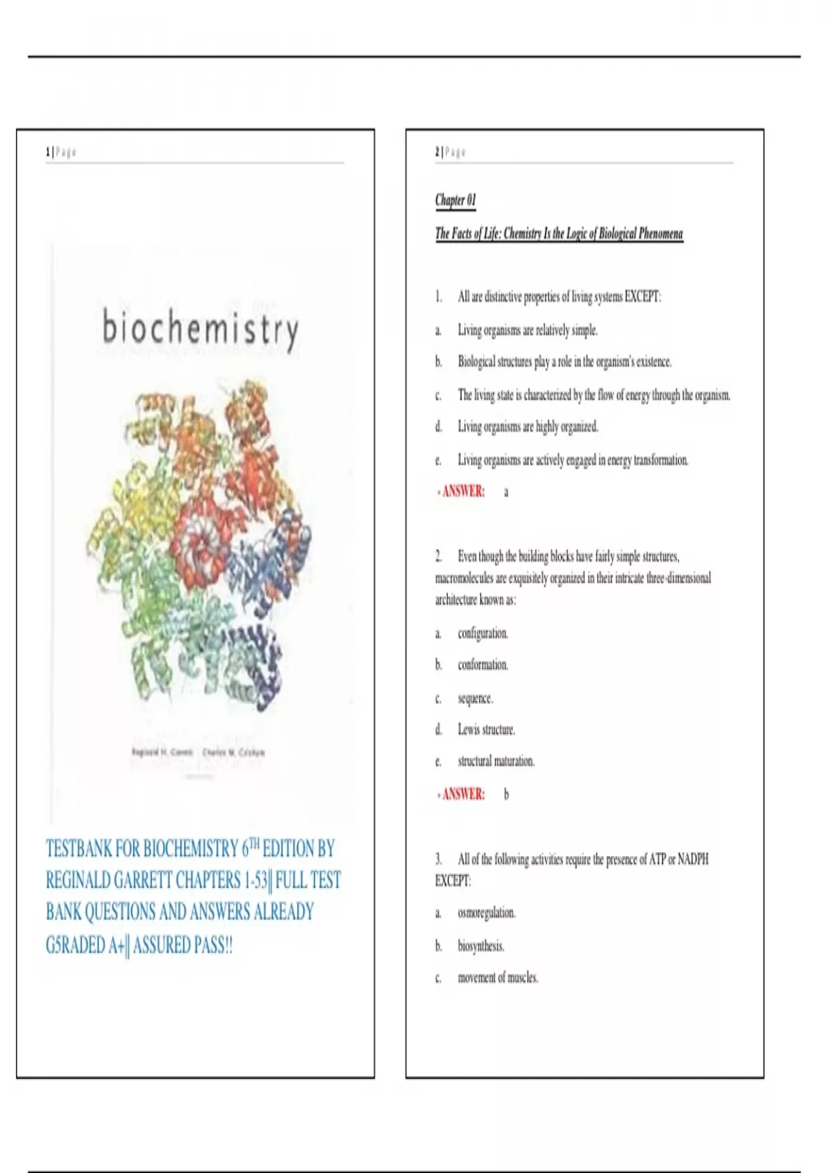 TESTBANK FOR BIOCHEMISTRY 6TH EDITION BY 3. All of the following activities require the presence of ATP or NADPH