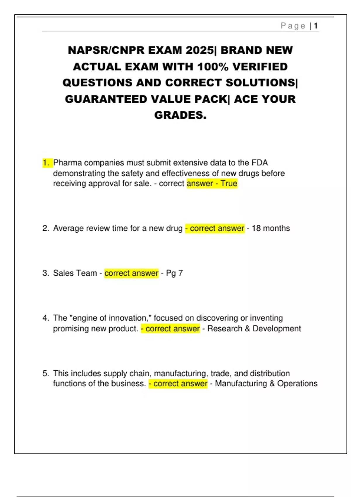 NAPSR/CNPR EXAM 2025| BRAND NEW ACTUAL EXAM WITH 100% VERIFIED QUESTIONS AND CORRECT SOLUTIONS| GUARANTEED VALUE PACK| ACE YOUR GRADES.